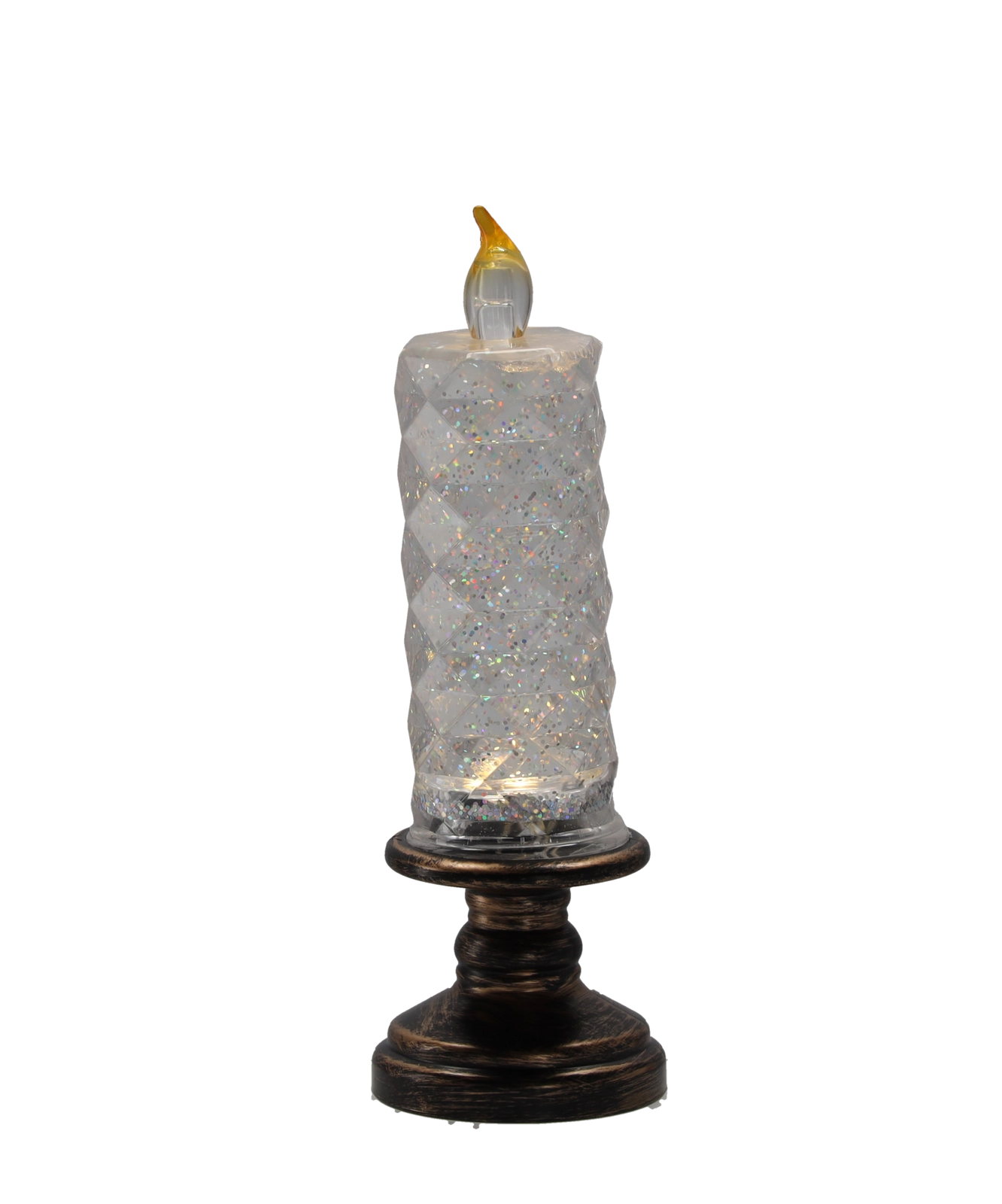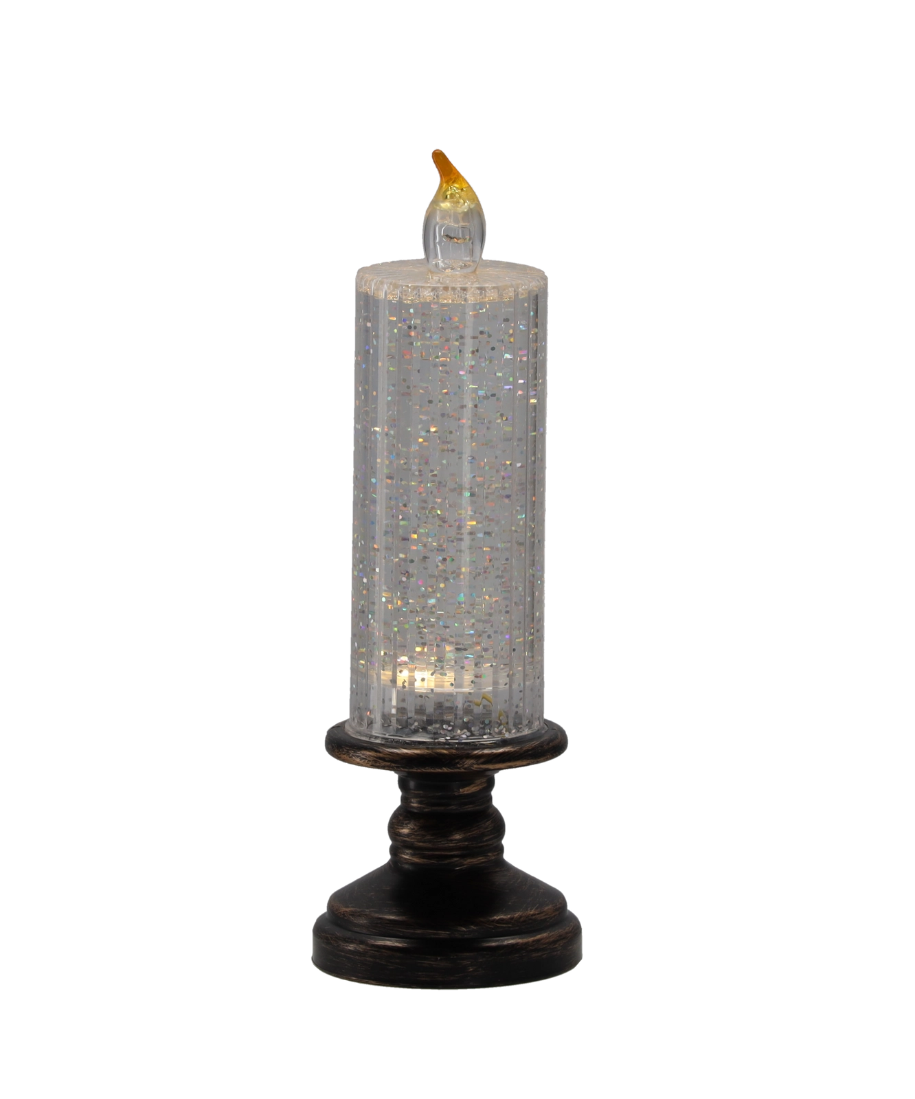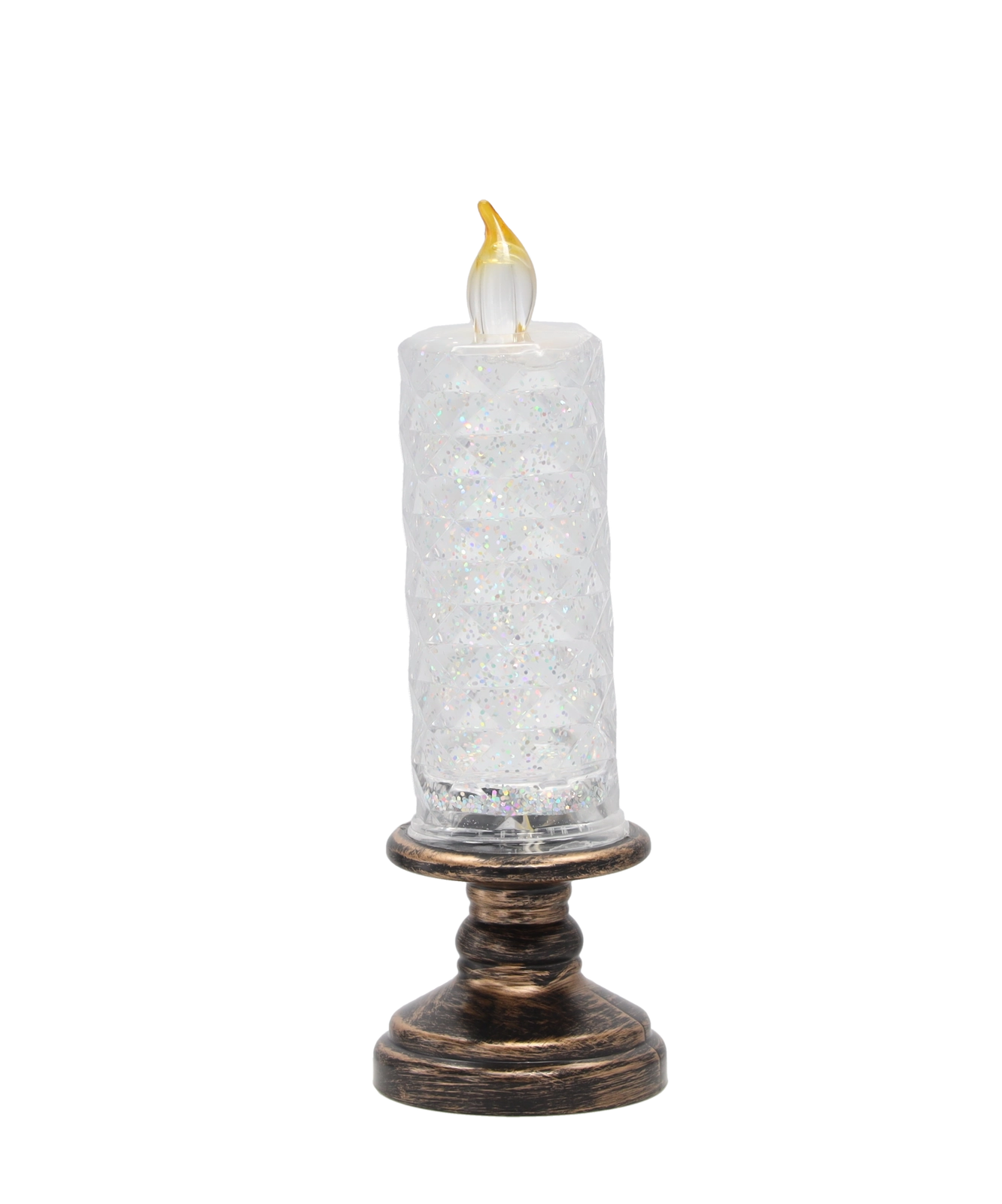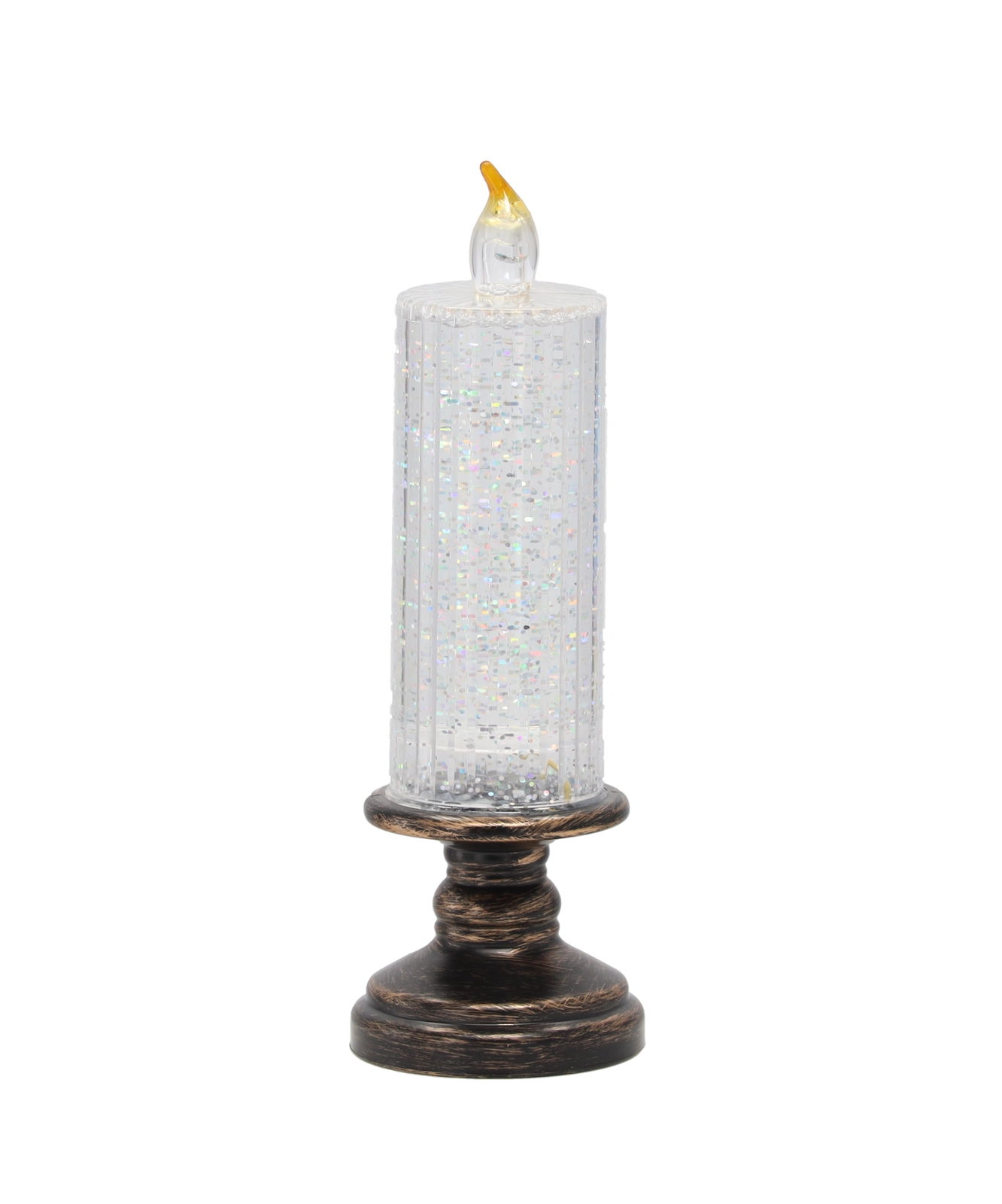 Această lumânare LED elegantă combină aspectul unei lumânări clasice cu iluminarea LED modernă. Corpul transparent cu sclipici se aprinde la pornire și creează un efect încântător de scânteiere, adăugând interiorului un farmec festiv sau potrivit pe tot parcursul anului. Datorită dimensiunilor compacte, este ideală pentru decorarea mesei, rafturilor sau recepției.