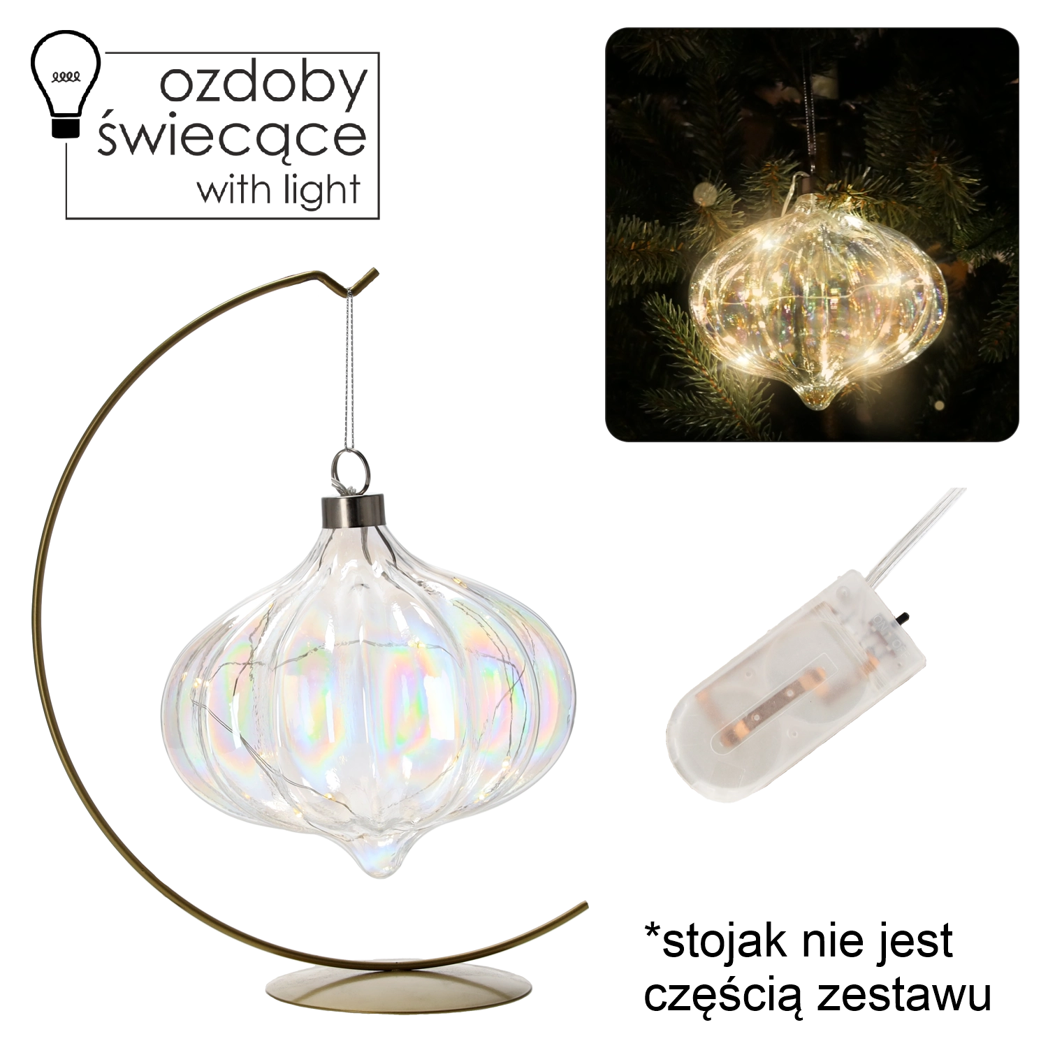 O decorațiune elegantă din sticlă, cu diametrul de 15 cm și iluminare LED integrată, transformă orice interior într-un spațiu primitor și stilat. Suprafața perlă transparentă oferă o strălucire delicată, iar execuția suspendată permite amplasarea ușoară la fereastră, pe tavan sau pe perete. Ideală pentru sărbători, petreceri și decor pe tot parcursul anului.