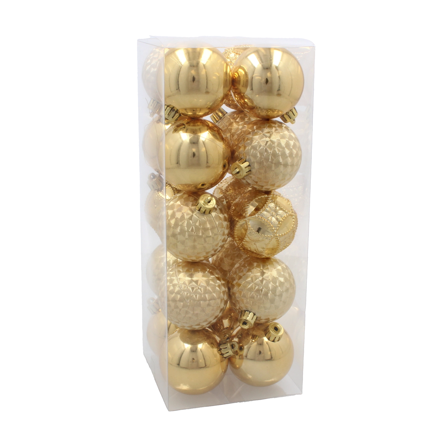 Creați acasă o atmosferă de Crăciun magică cu setul de ornamente universale, care datorită diametrului de 6 cm se potrivesc excelent atât pentru brazi mai mici, cât și pentru cei mai mari. Combinația de culori roșu, auriu și argintiu oferă un aspect tradițional, ușor de asortat cu alte decorațiuni.