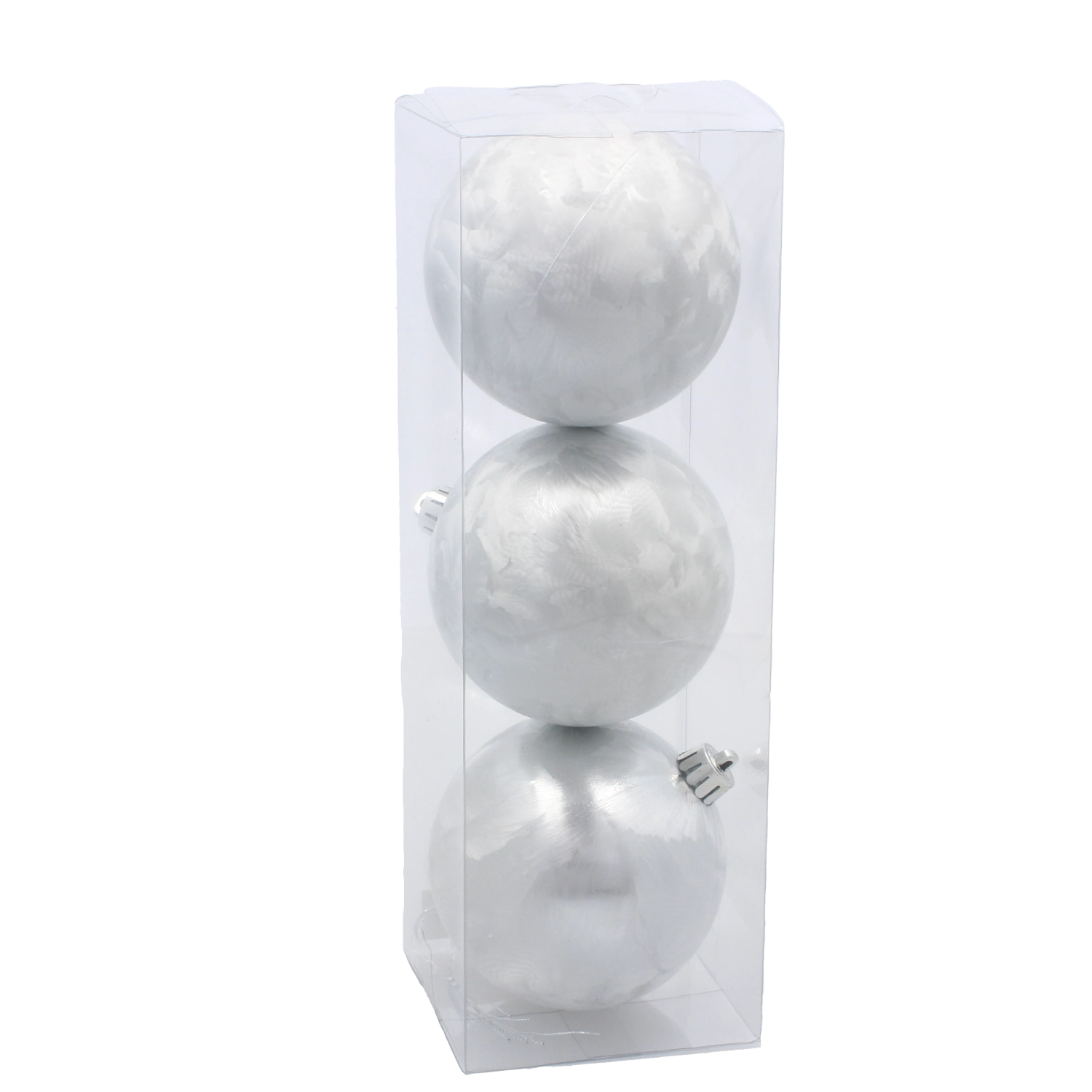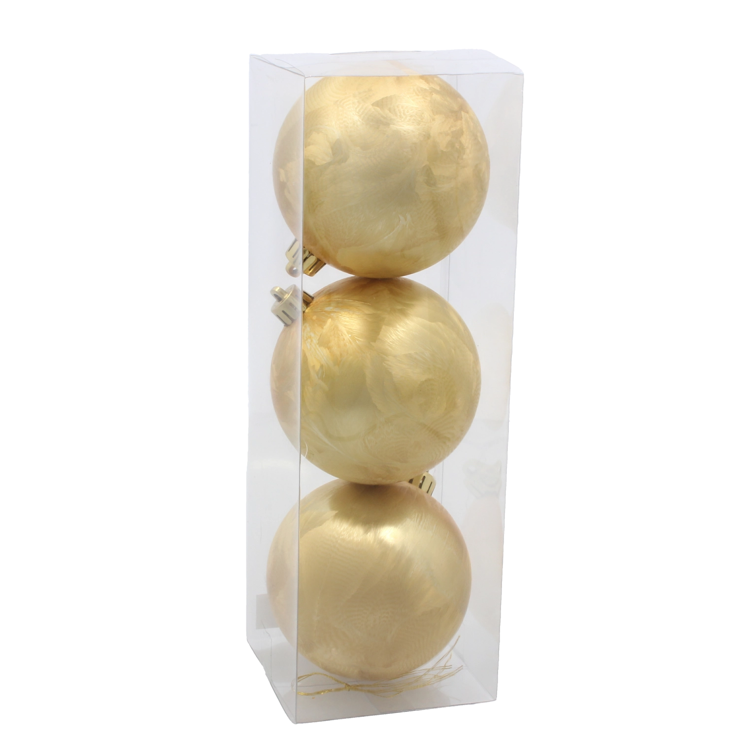 Fiecare glob este echipat cu un agățător auriu solid pentru fixare rapidă pe ramuri sau cârlige. Ambalajul de 3 bucăți este perfect ca set suplimentar pentru decorațiunile existente sau ca bază pentru o nouă compoziție.