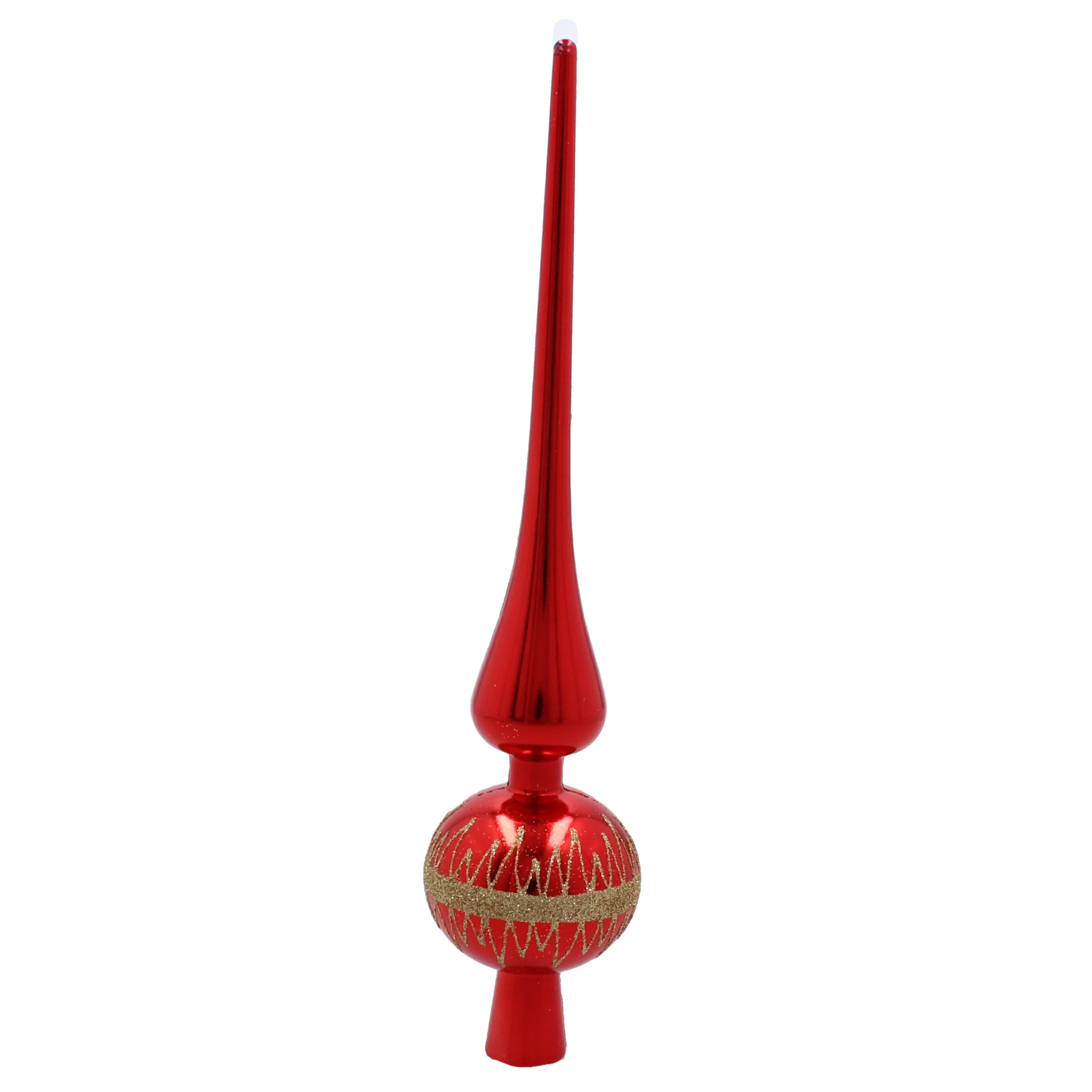 Completează atmosfera sărbătorilor cu un vârf stilat din sticlă de calitate, care încununează orice brad de Crăciun. Suprafața lucioasă reflectă superb lumina și conferă decorațiunii strălucire și eleganță. Datorită execuției atente, vârful este rezistent și pregătit să aducă bucurie multe sezoane.