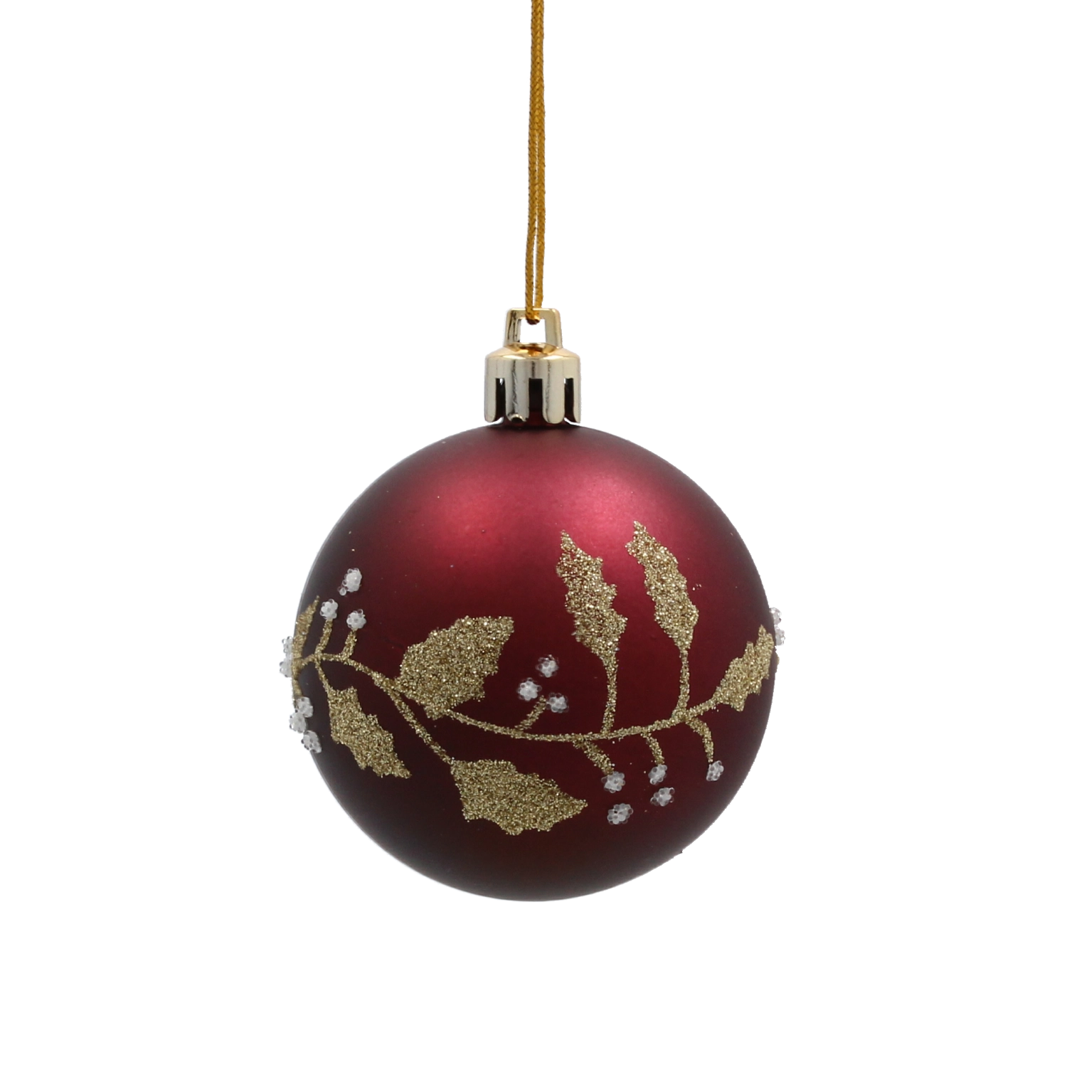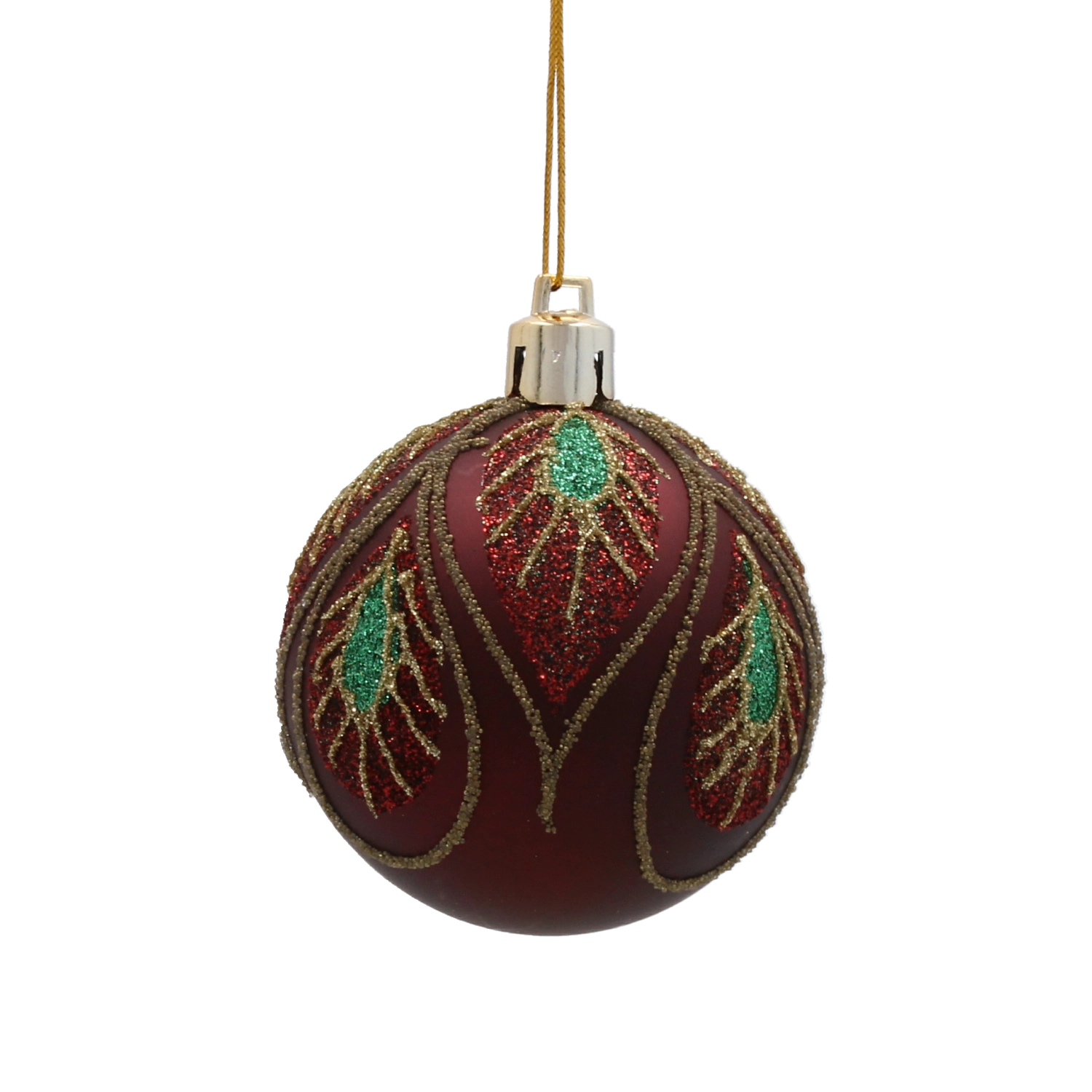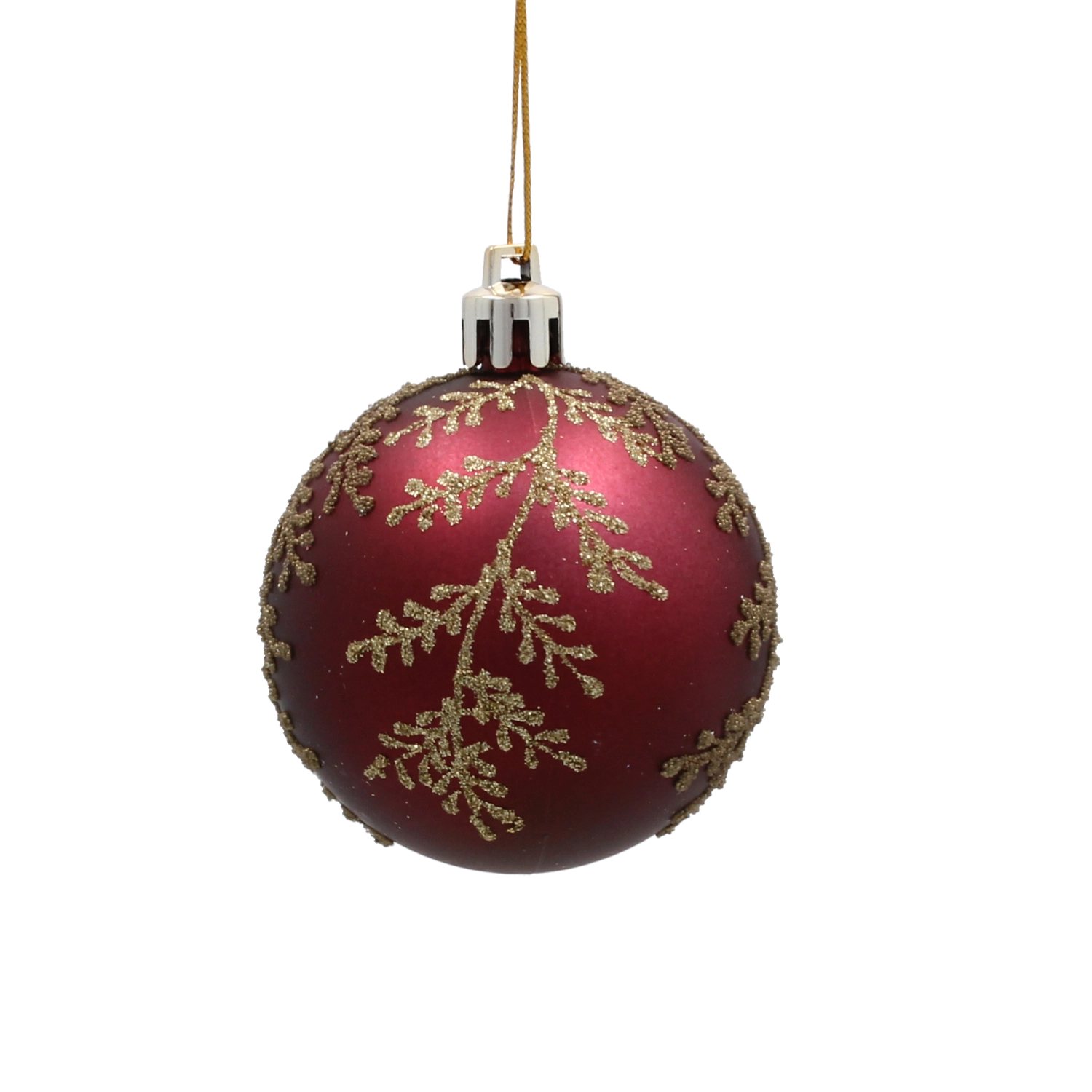 Nuanța intensă de burgund cu un sofisticat model auriu de frunze aduce decorațiunii profunzime, căldură și strălucire festivă.