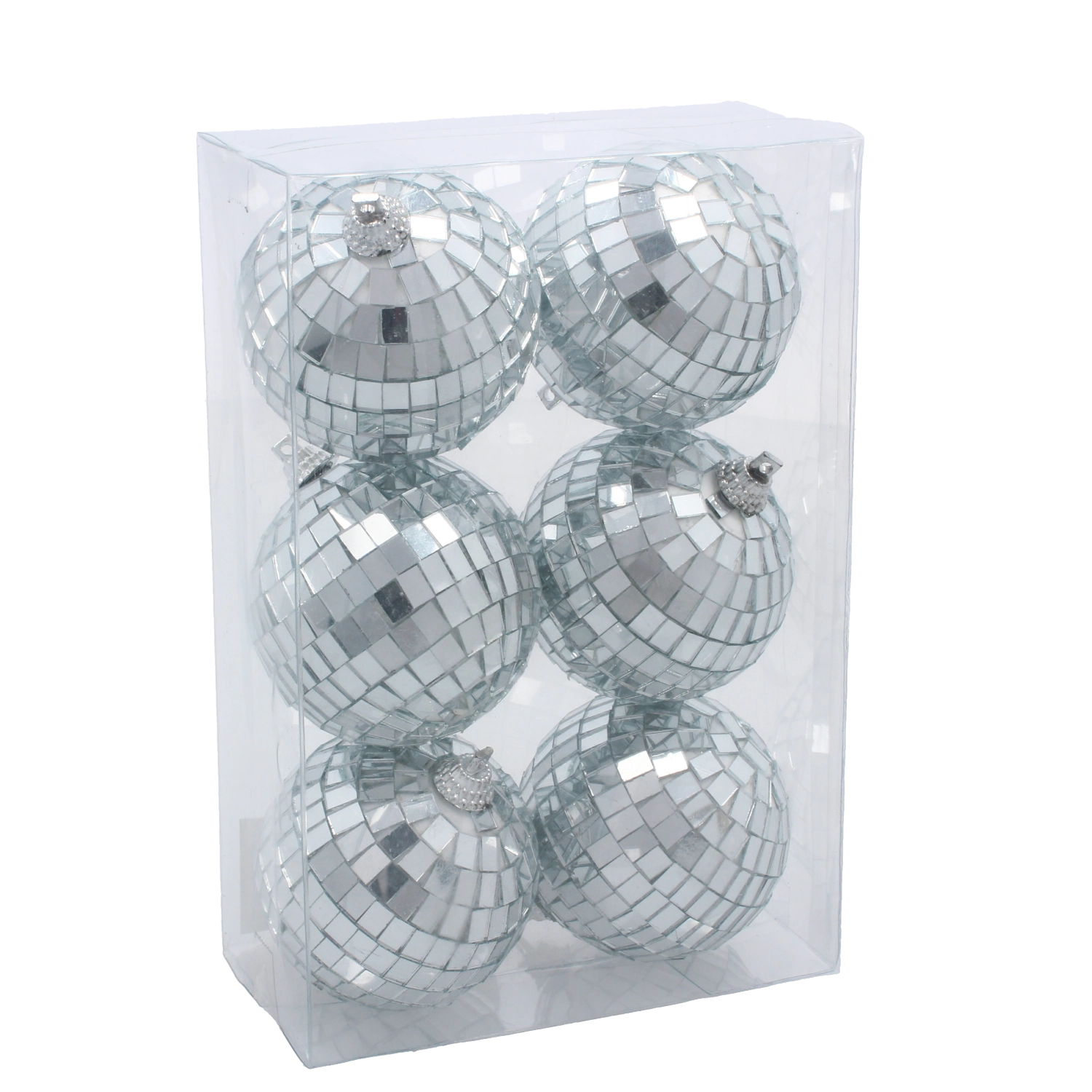 Un set elegant de 6 ornamente de Crăciun cu diametrul de 6 cm adaugă decorului tău strălucire modernă și stil. Globurile transparente cu model alb fin sclipitor reflectă frumos lumina și creează un efect vizual deosebit. Datorită șnururilor argintii, agățarea este rapidă și ușoară, iar materialul care nu se sparge asigură durabilitate pentru multe sezoane.