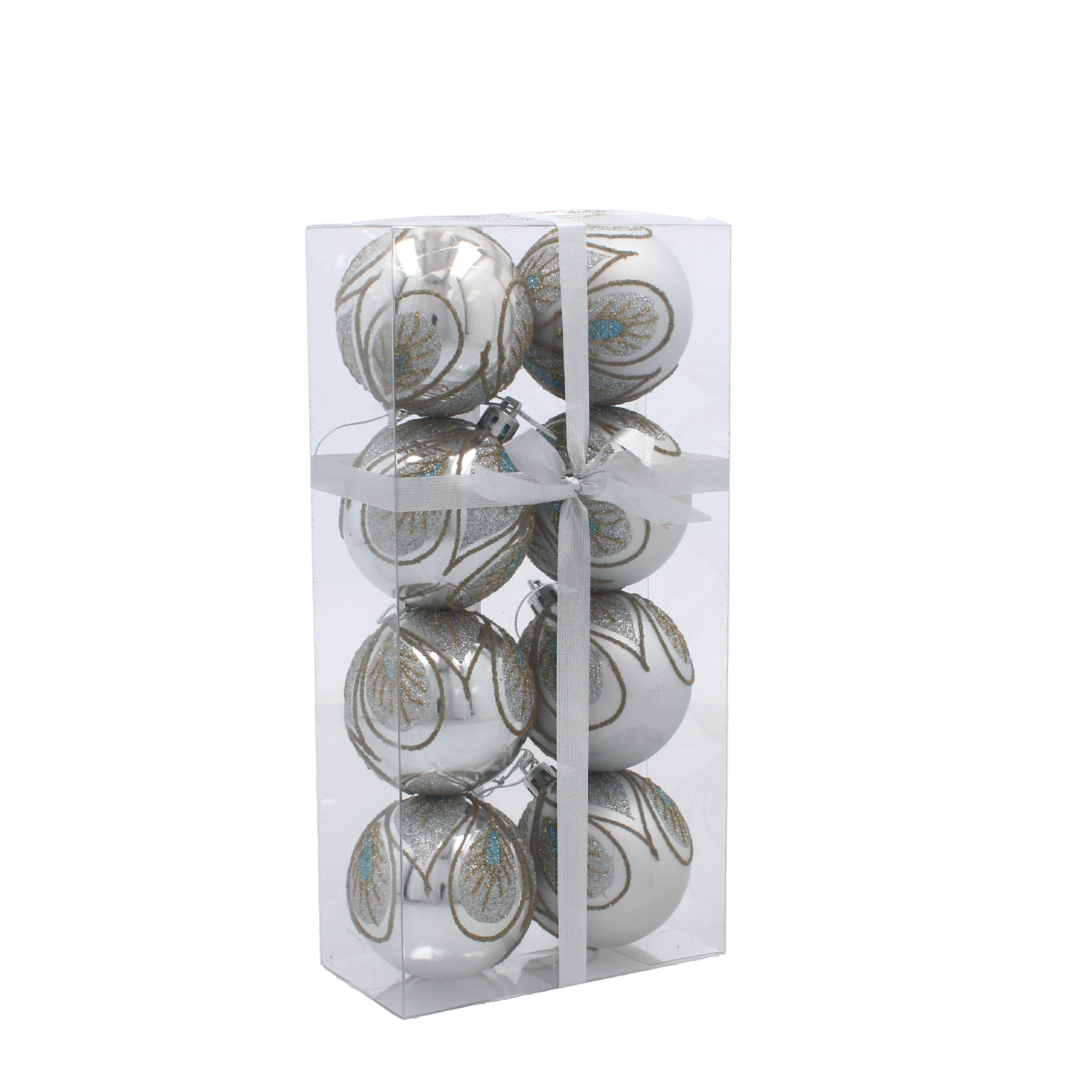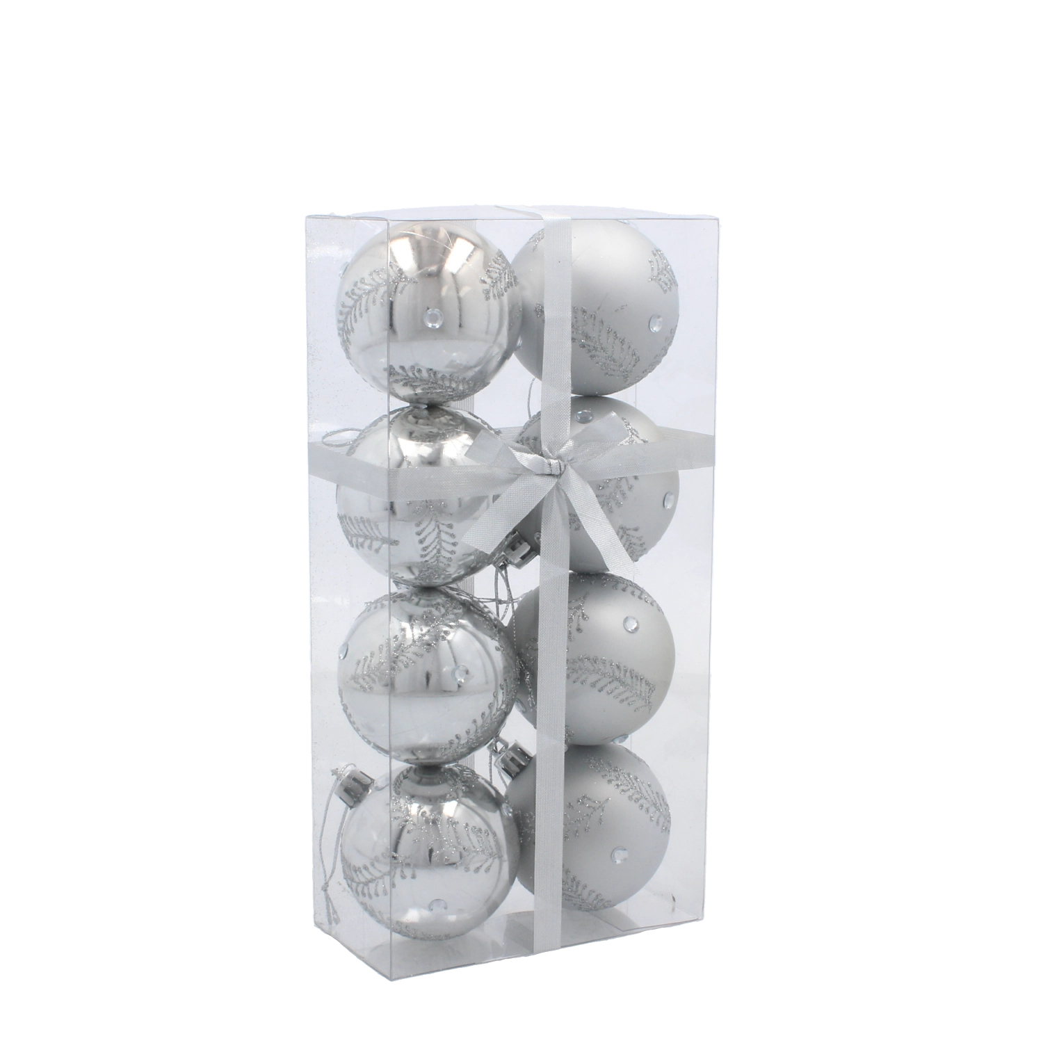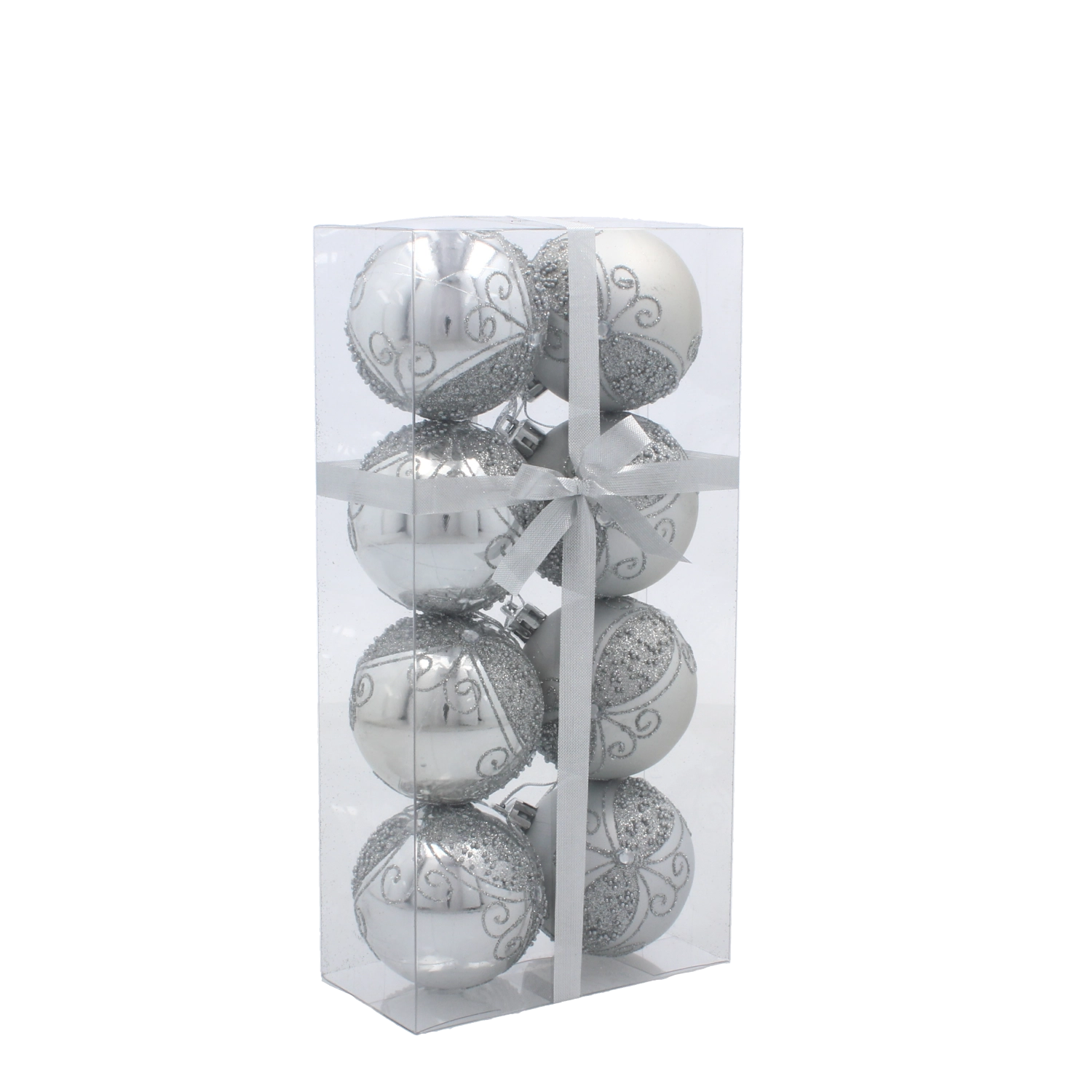 Acest set de 8 globuri de Crăciun argintii aduce un stil universal și atemporal în orice locuință. Culoarea argintie se potrivește perfect atât iluminatului cald, cât și celui rece și susține un aspect luxos al decorului de Crăciun. Datorită execuției din plastic rezistent, nu trebuie să îți faci griji de spargere la agățare sau depozitare.