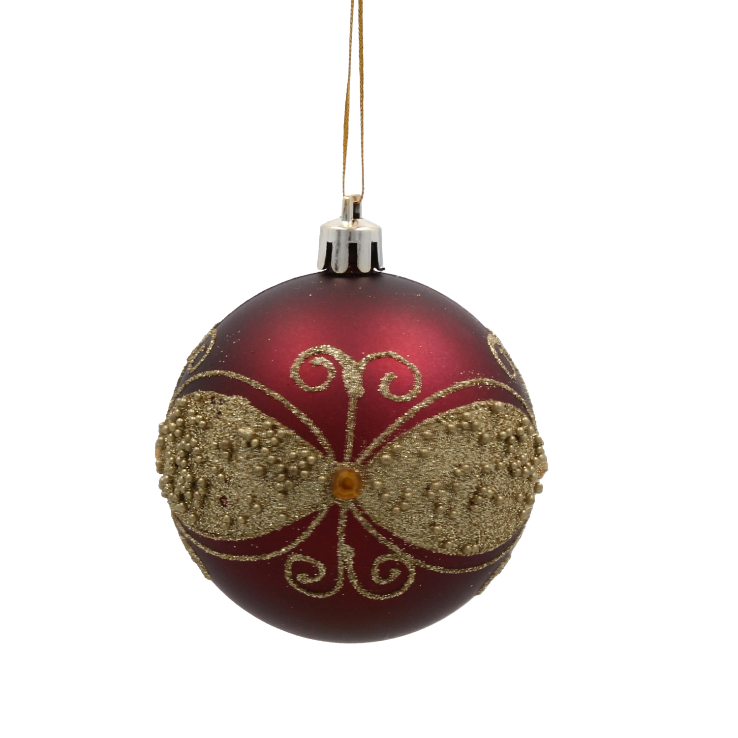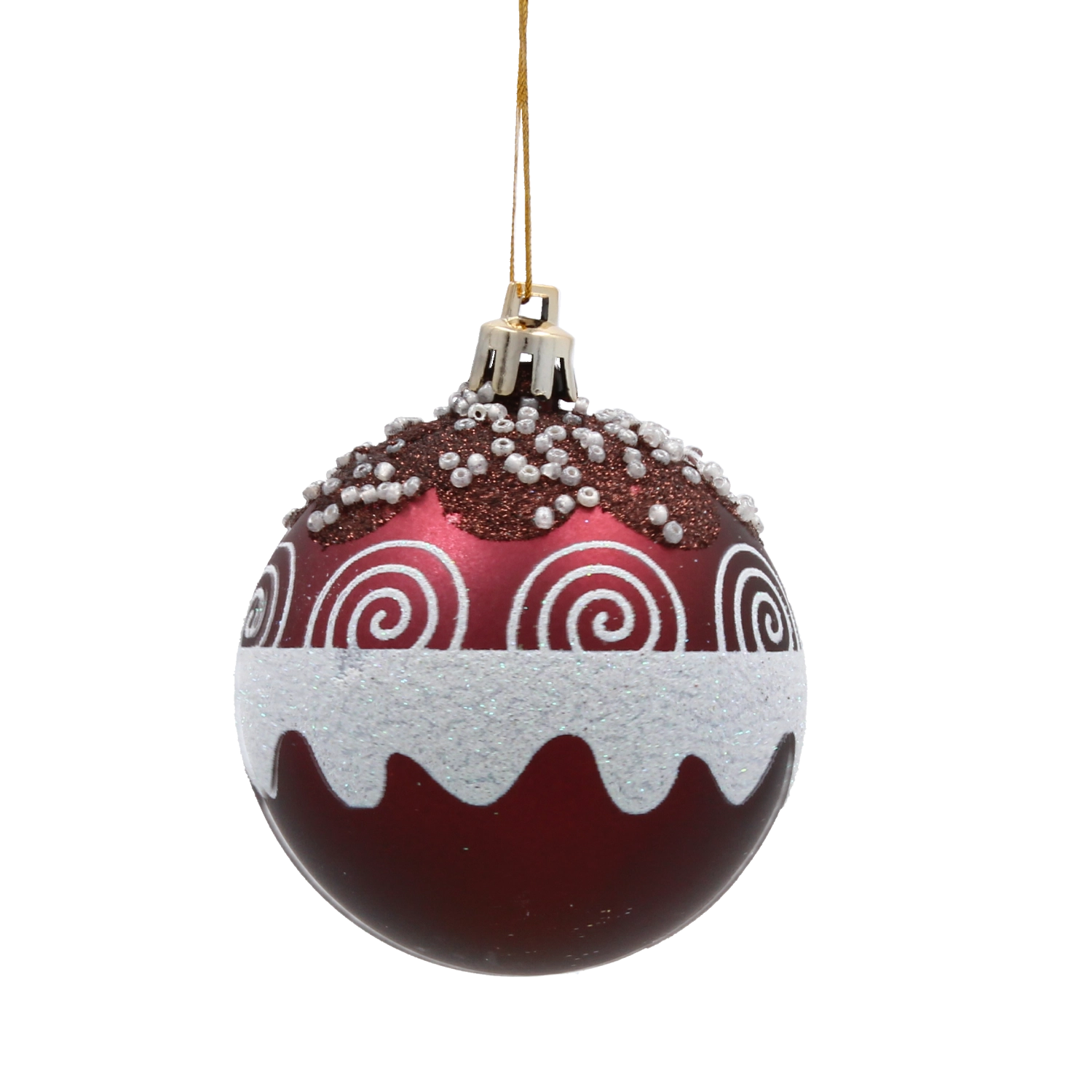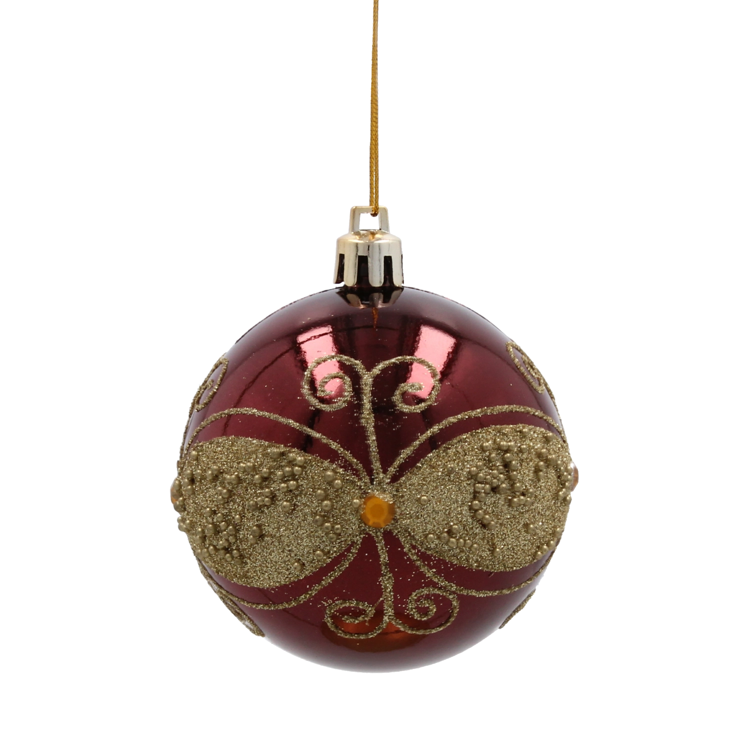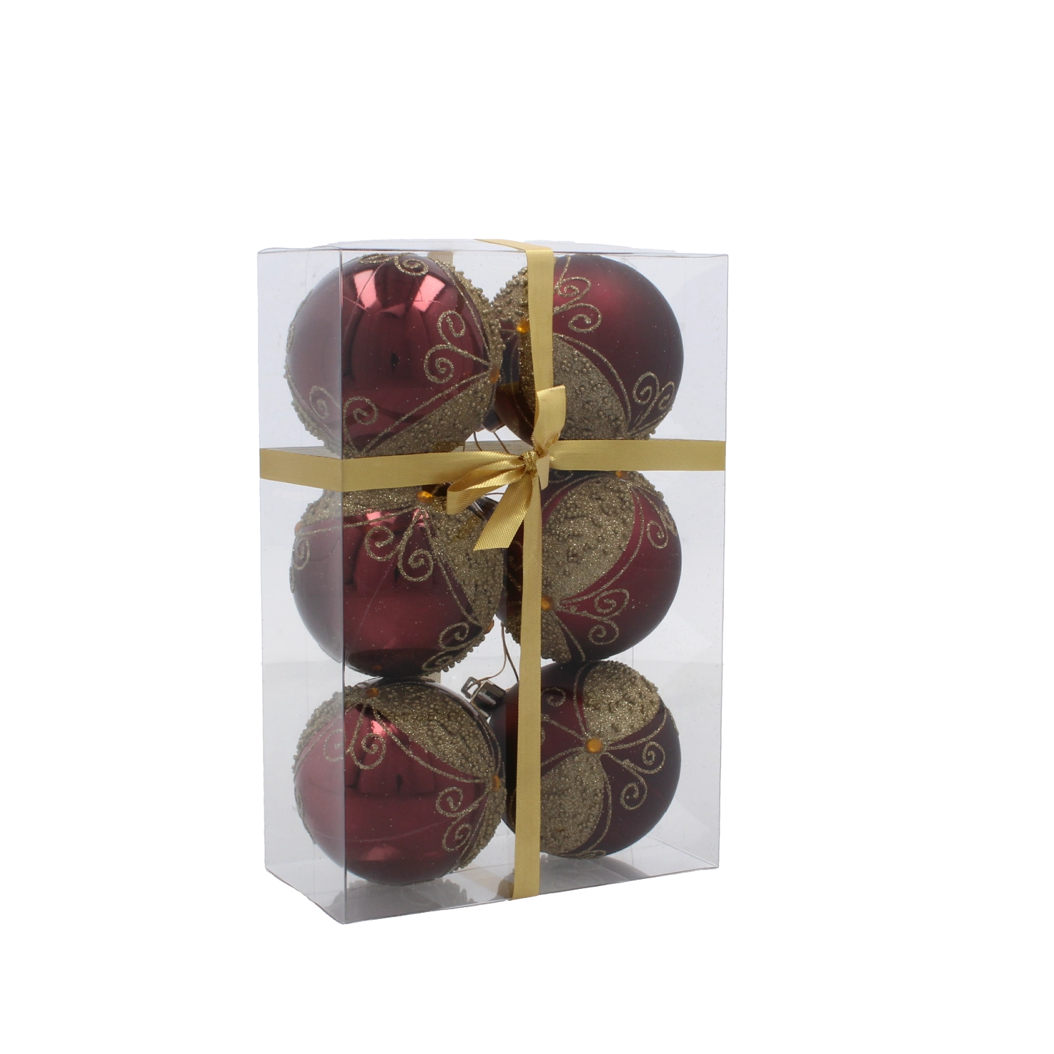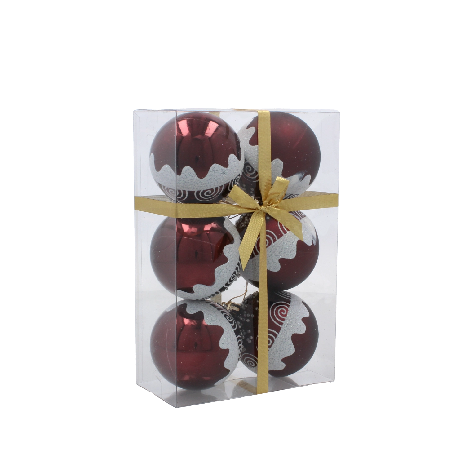 Fiecare glob are diametrul de 7 cm și este prevăzut cu șnur pentru o agățare comodă. Combinația dintre nuanța caldă burgund și detaliile aurii se potrivește perfect cu cetina și decorațiunile de sezon, creând o atmosferă armonioasă și festivă.