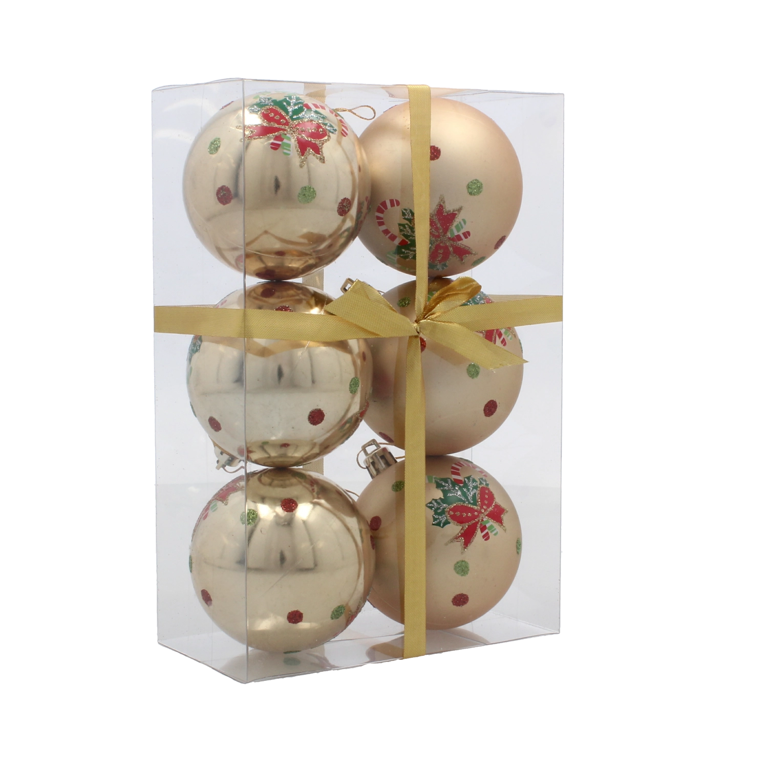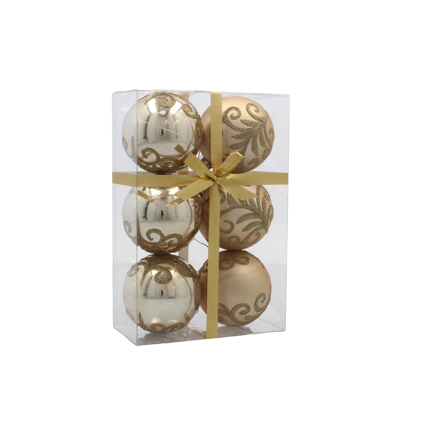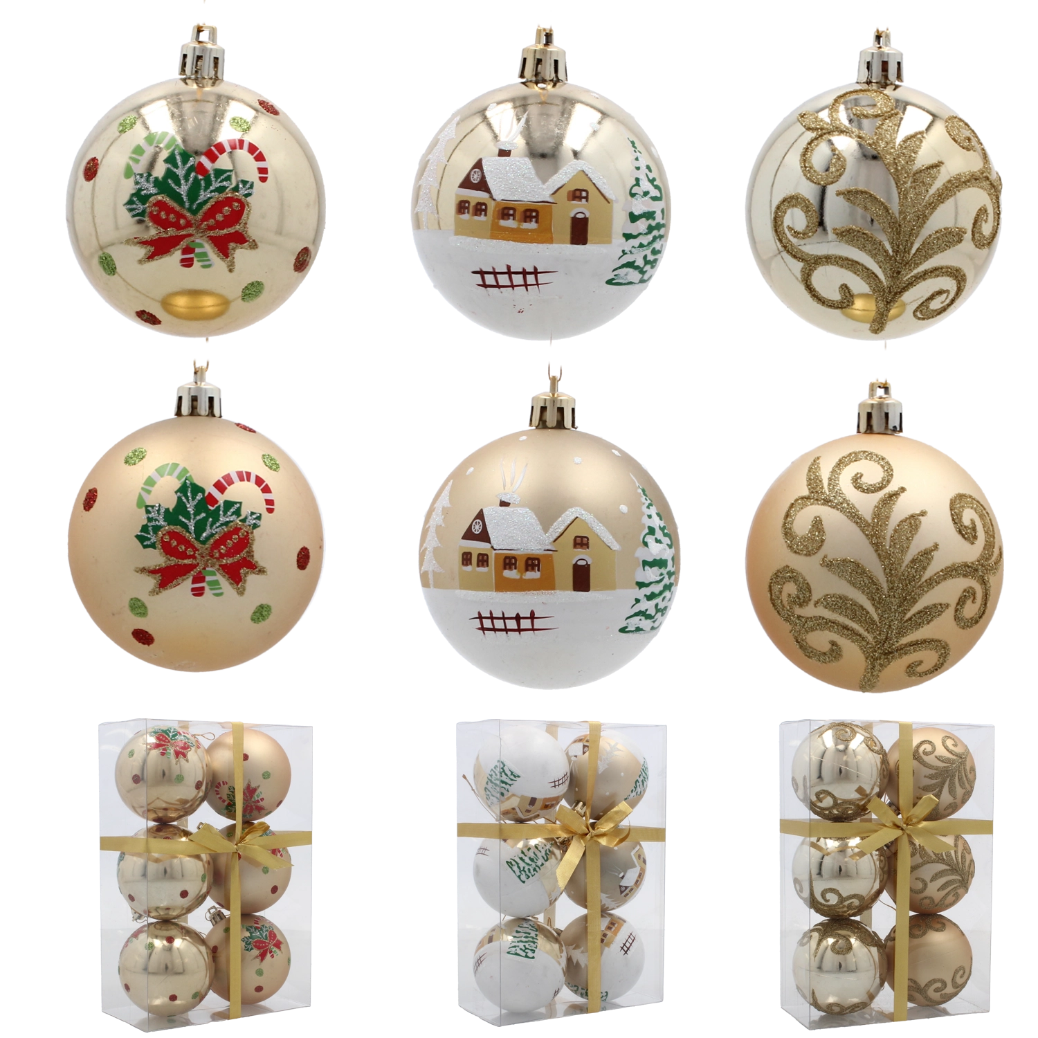 Îmbogățește-ți decorațiunile de Crăciun cu un set stilat de globuri aurii, care, datorită modelelor și finisajelor variate, au un aspect luxos și totodată rămân universale. Construcția ușoară din plastic nedistructibil asigură agățarea facilă fără a încărca ramurile și o durată de viață îndelungată, chiar și în cazul utilizării frecvente.