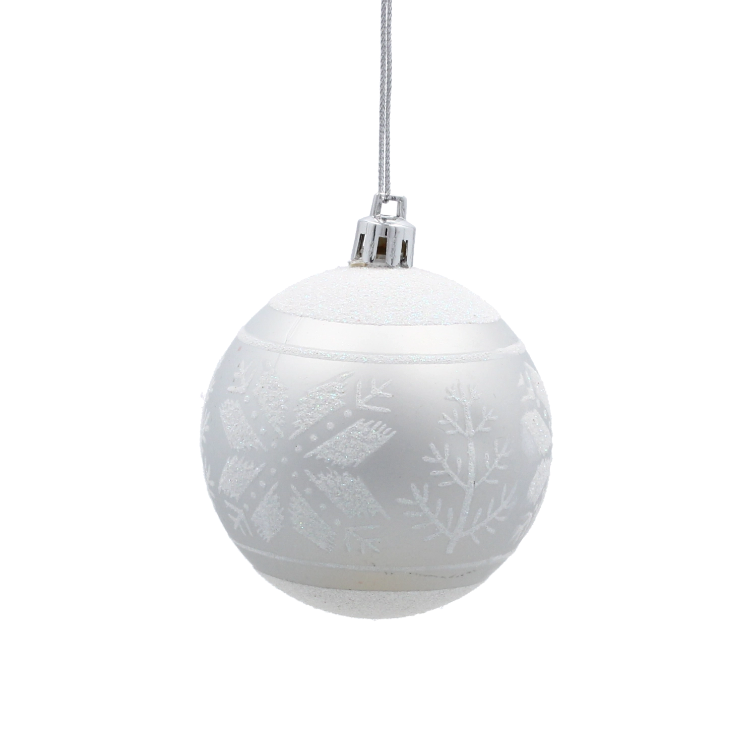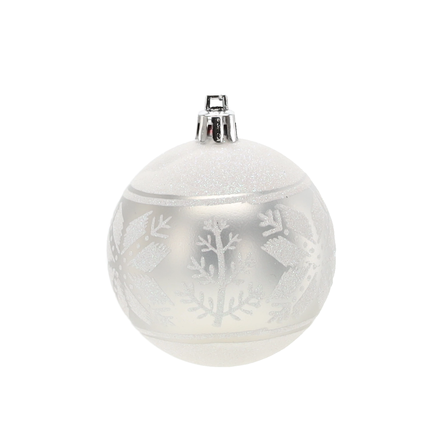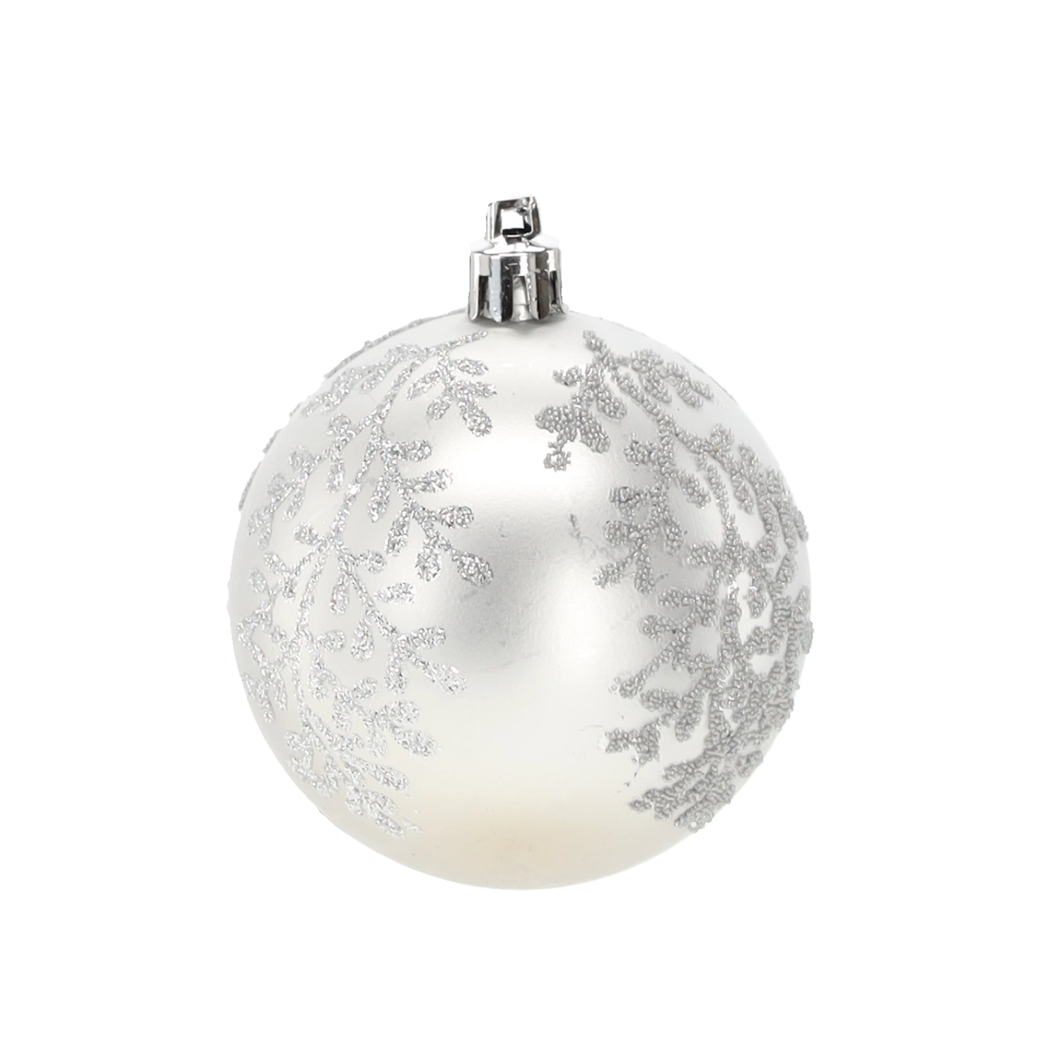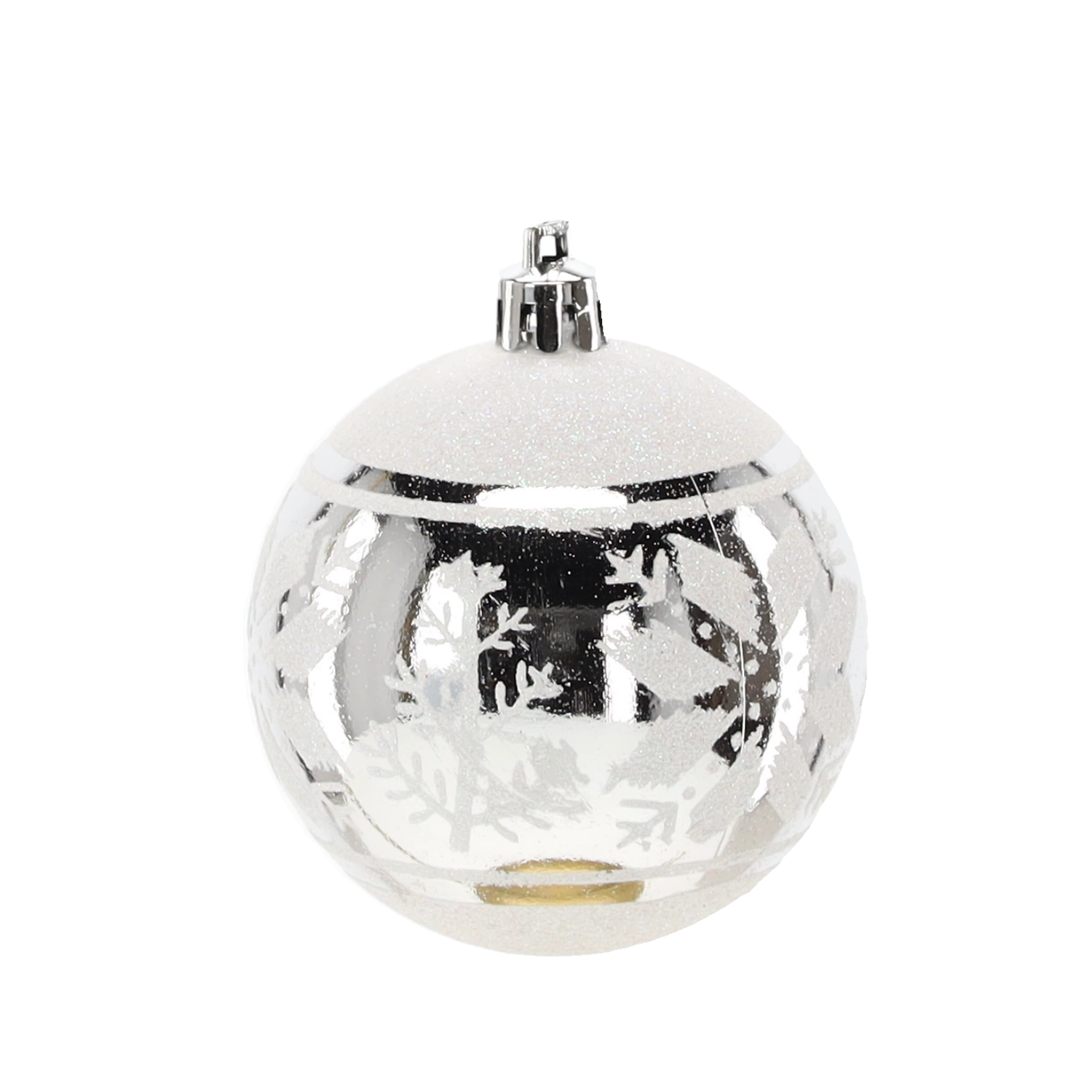 Set elegant de șase globuri argintii de Crăciun, cu diametrul de 7 cm, care adaugă decorului tău strălucire și eleganță. Combinația de finisaje mate și lucioase cu detalii sclipitoare creează o atmosferă festivă plină de farmec. Plasticul ușor și rezistent este sigur pentru copii și ideal pentru agățare ușoară pe brad, coroane, ghirlande sau în aranjamente de masă.