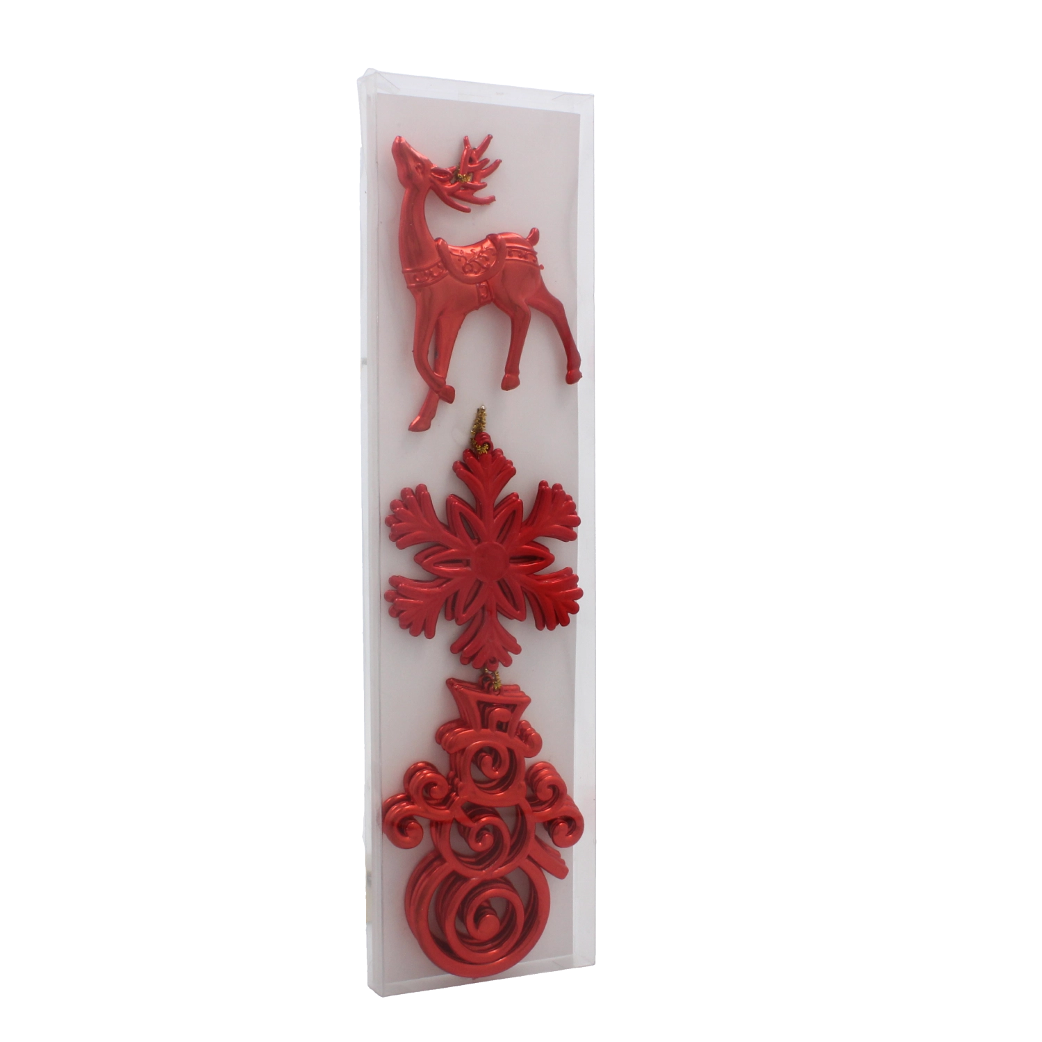 Acest set stilat reunește trei motive de Crăciun îndrăgite – ren, fulg de zăpadă și om de zăpadă – într-o execuție ușoară și rezistentă, cu luciu intens. Datorită greutății reduse, nu încarcă ramurile și rămân fixate stabil, pentru un aspect perfect echilibrat al bradului.