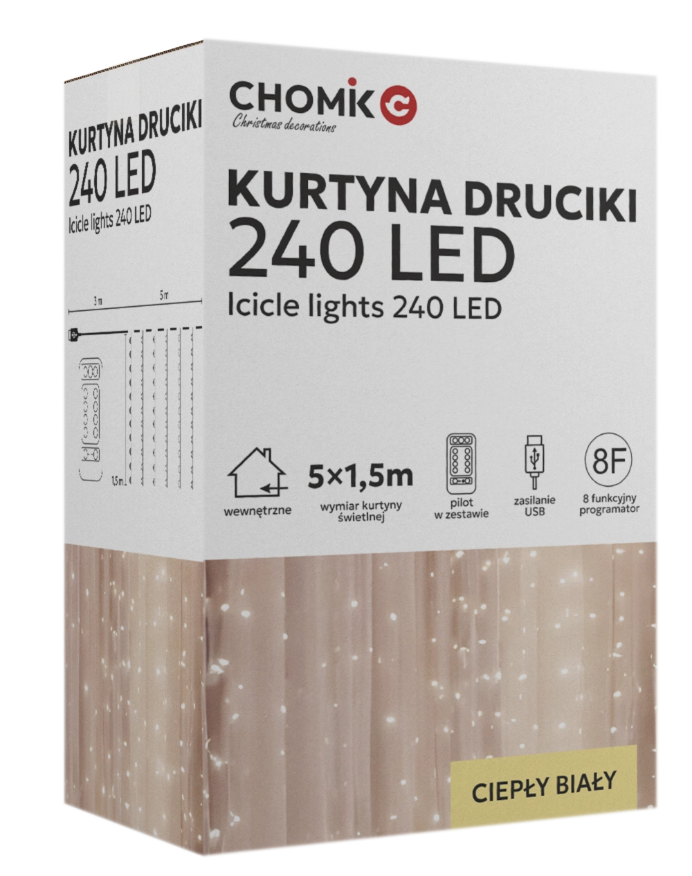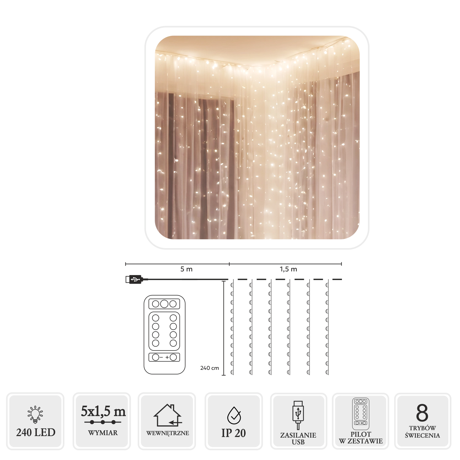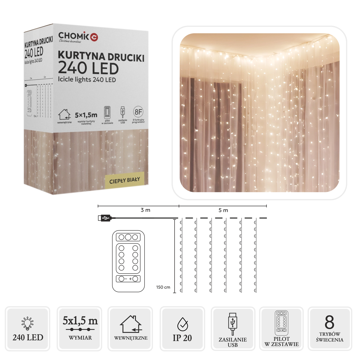 Transformă orice spațiu obișnuit într-un loc magic plin de lumină. Această cortină LED fină, cu fire argintii și lumină alb cald, adaugă o notă plăcută de eleganță atât în interior, cât și în exterior – ideală pentru sărbători, nunți, seri romantice sau decor pe tot parcursul anului. Alimentarea USB permite conectarea la adaptor, baterie externă sau PC, iar telecomanda facilitează alegerea dintre 8 programe luminoase.