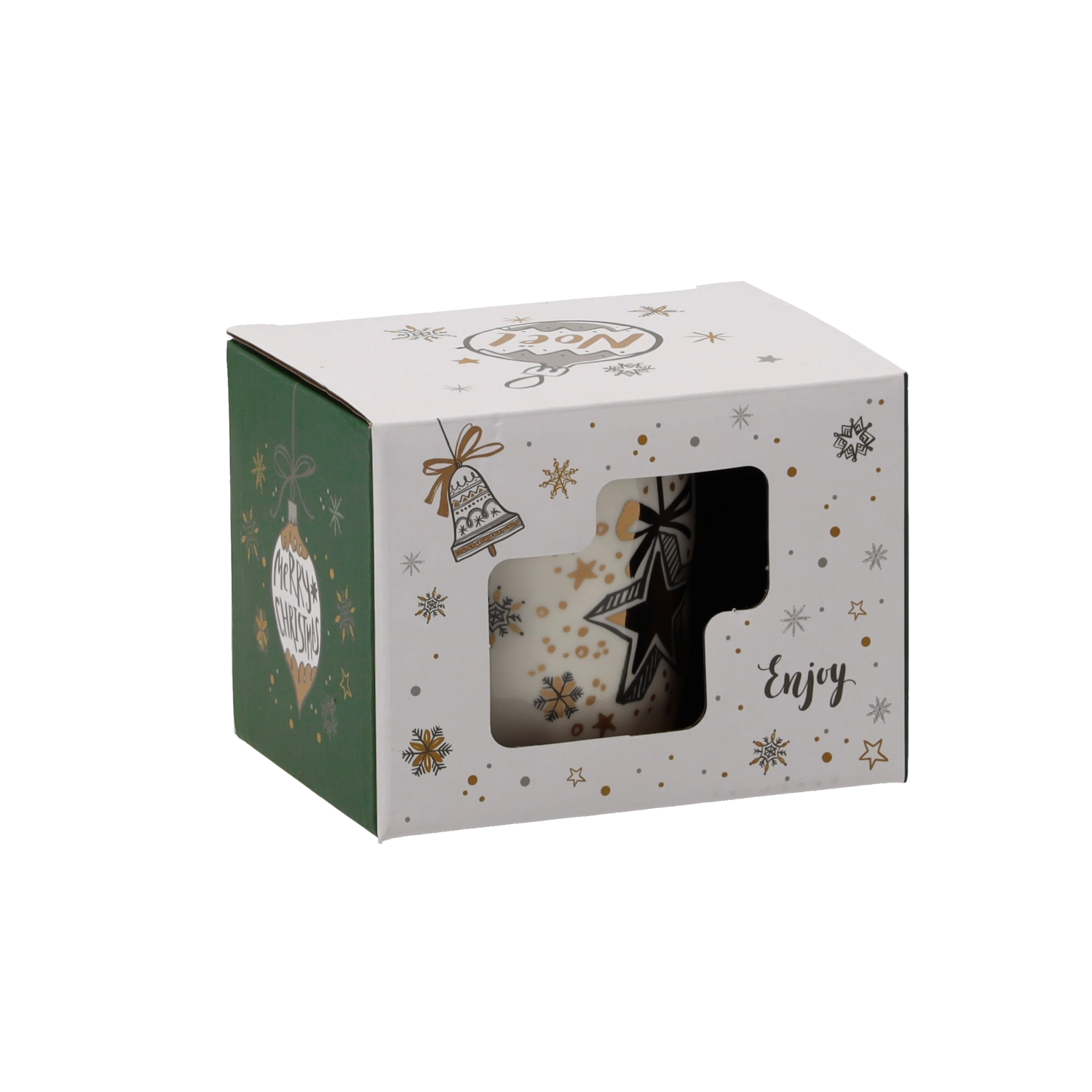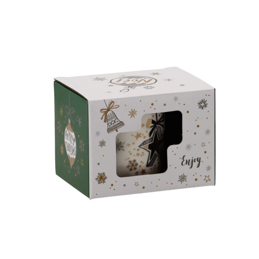 Cană elegantă din porțelan, cu volum de 320 ml și motive de Crăciun, care adaugă momentelor tale de iarnă o notă unică de confort. Datorită materialului de calitate este rezistentă pentru utilizare zilnică, are toartă ergonomică și confortabilă și este ideală pentru cafea și ceai. Livrată într-o cutie cadou stilată – o idee excelentă de cadou de Crăciun.