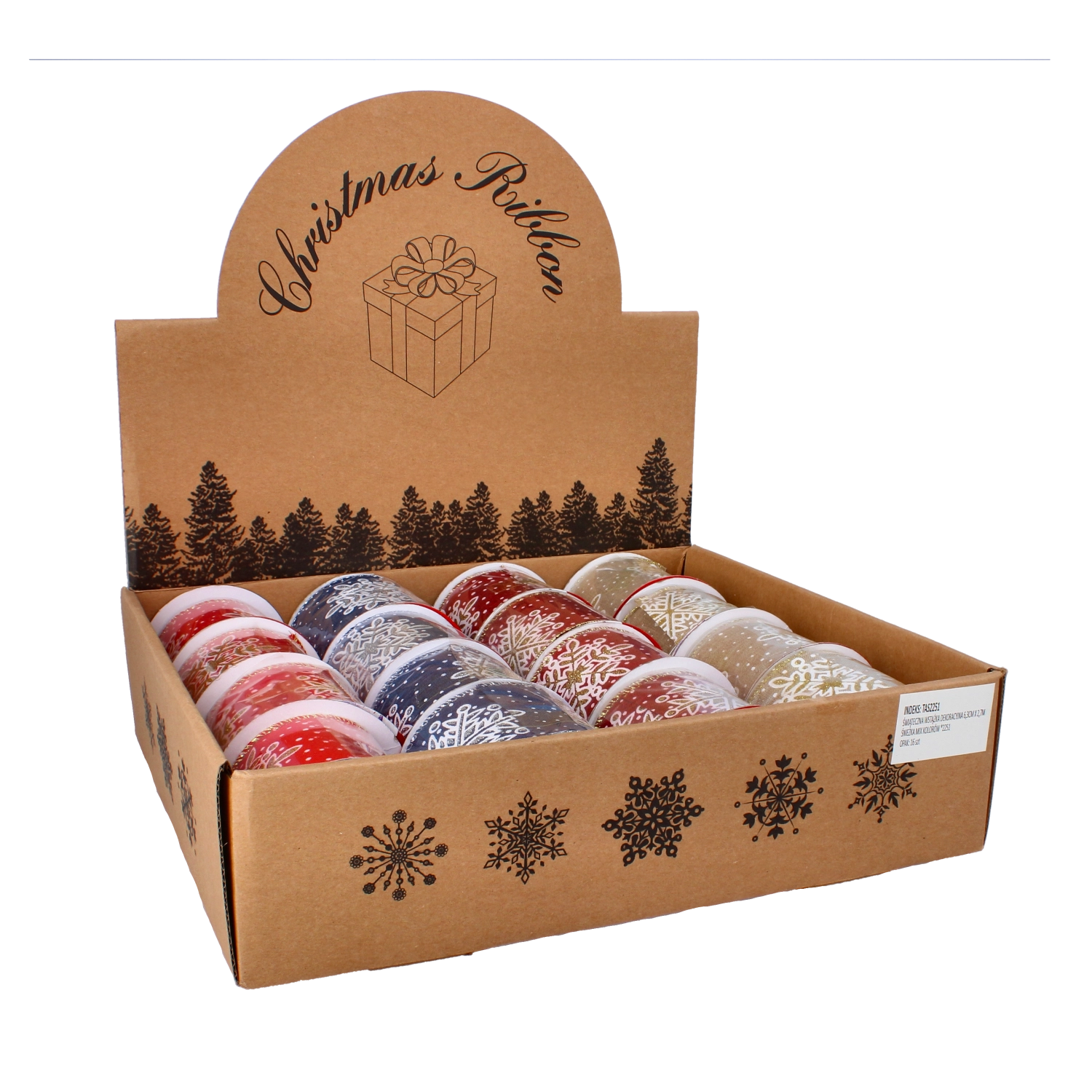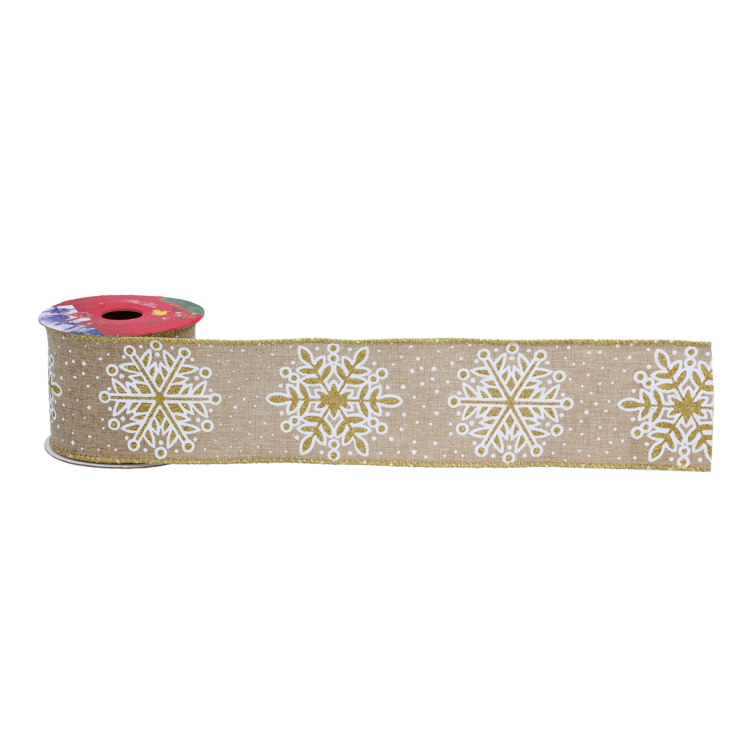 Panglica de Crăciun, stilată, adaugă personalitate și farmec decorațiunilor dvs. Firele modelabile din laterale ajută la menținerea formei perfecte a fundelor, buclelor și marginilor, în timp ce finisajul satinat oferă un aspect luxos și reflectă frumos lumina lumânărilor sau a șirurilor LED. Motivul cu fulgi de zăpadă, combinat cu puncte discrete, subliniază magia sărbătorilor de iarnă.