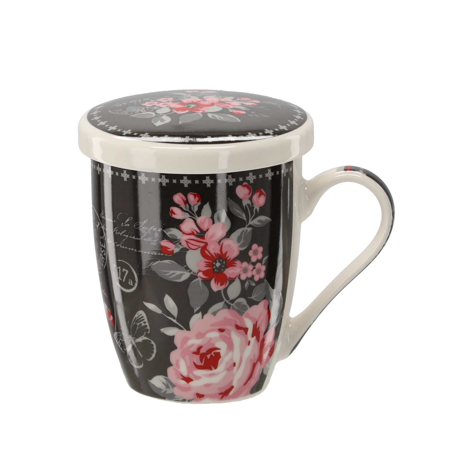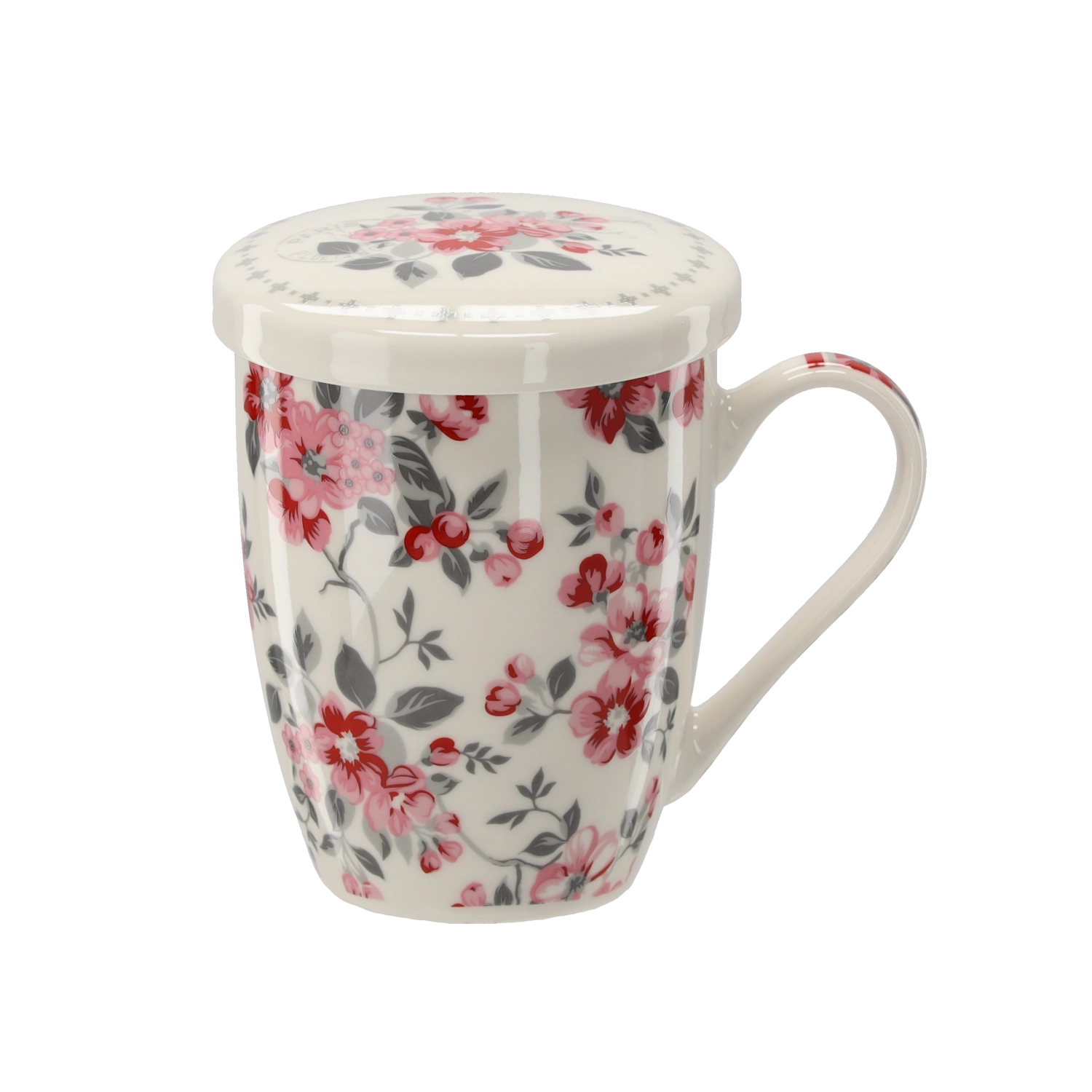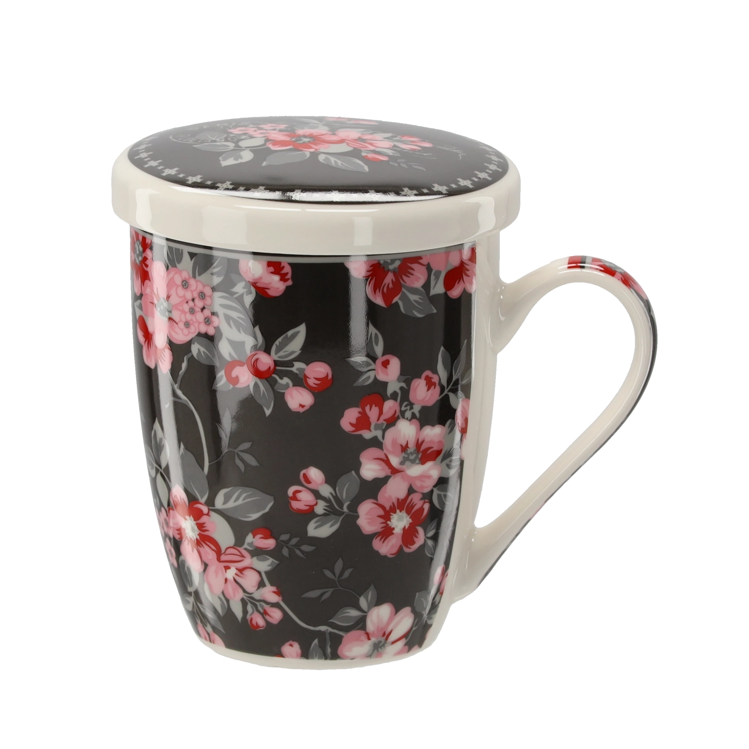 Motivele florale moderne se evidențiază atât acasă, cât și la birou și transformă cana într-un cadou grozav pentru orice iubitor de ceai.