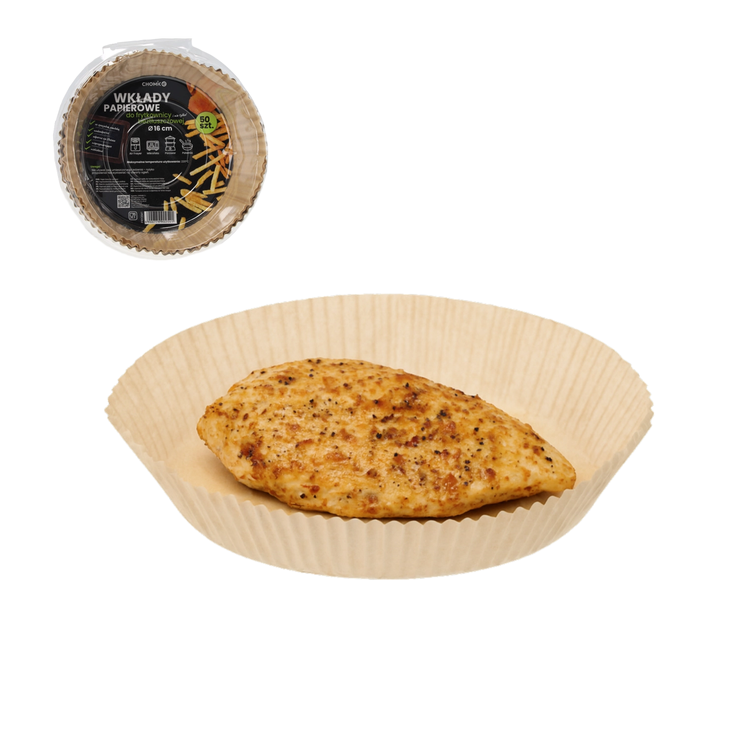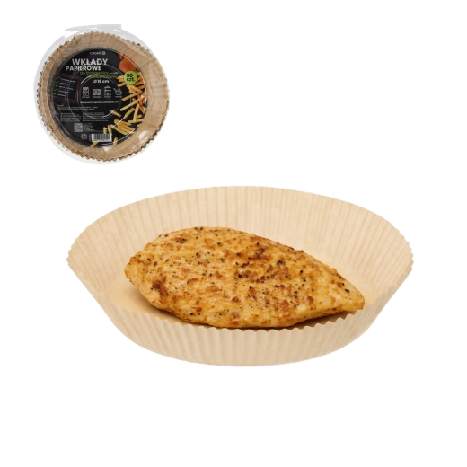 Păstrați friteuza cu aer cald impecabil de curată datorită inserțiilor de hârtie cu diametrul de 16 cm și înălțimea de 4,5 cm. Sunt fabricate din hârtie nealbă cu un tratament special al suprafeței, care este antiaderent, rezistent la apă și rezistent la grăsimi. Potrivite pentru friteuza cu aer cald, cuptorul cu microunde, vaporiere și tigaie, cu contact sigur cu alimentele (certificări FDA, LFGB, FSC) și rezistență până la 220 °C.