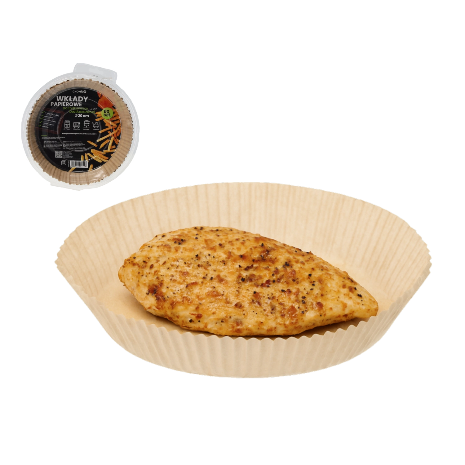 Păstrați friteuza cu aer cald impecabil de curată datorită inserturilor practice din hârtie neînălbită. Sunt rezistente la apă, rezistente la grăsimi și au un strat antiaderent, astfel încât mâncarea nu se lipește, iar curățarea durează doar o clipă. Potrivite și pentru cuptorul cu microunde, aparatul de gătit la abur și tigaie, cu certificate de siguranță pentru contactul cu alimentele.