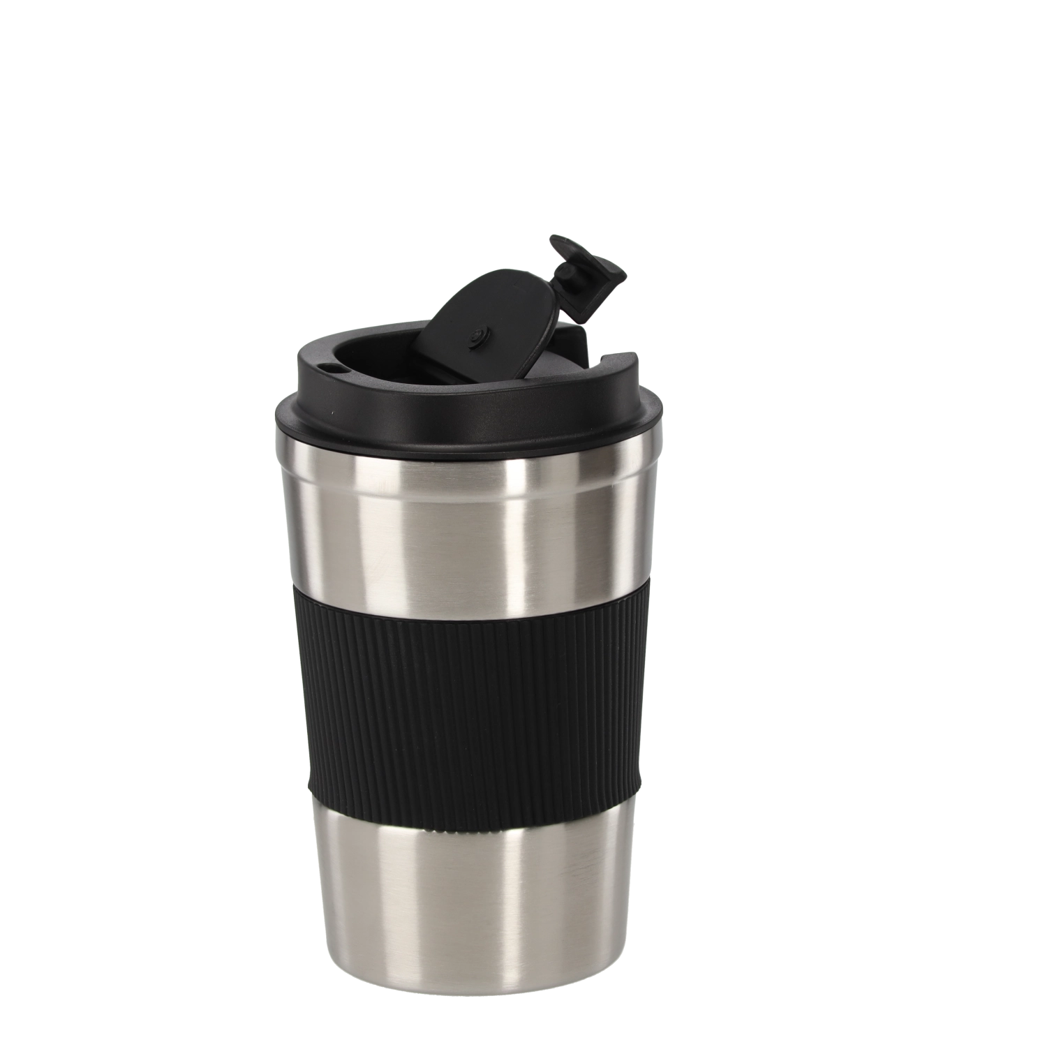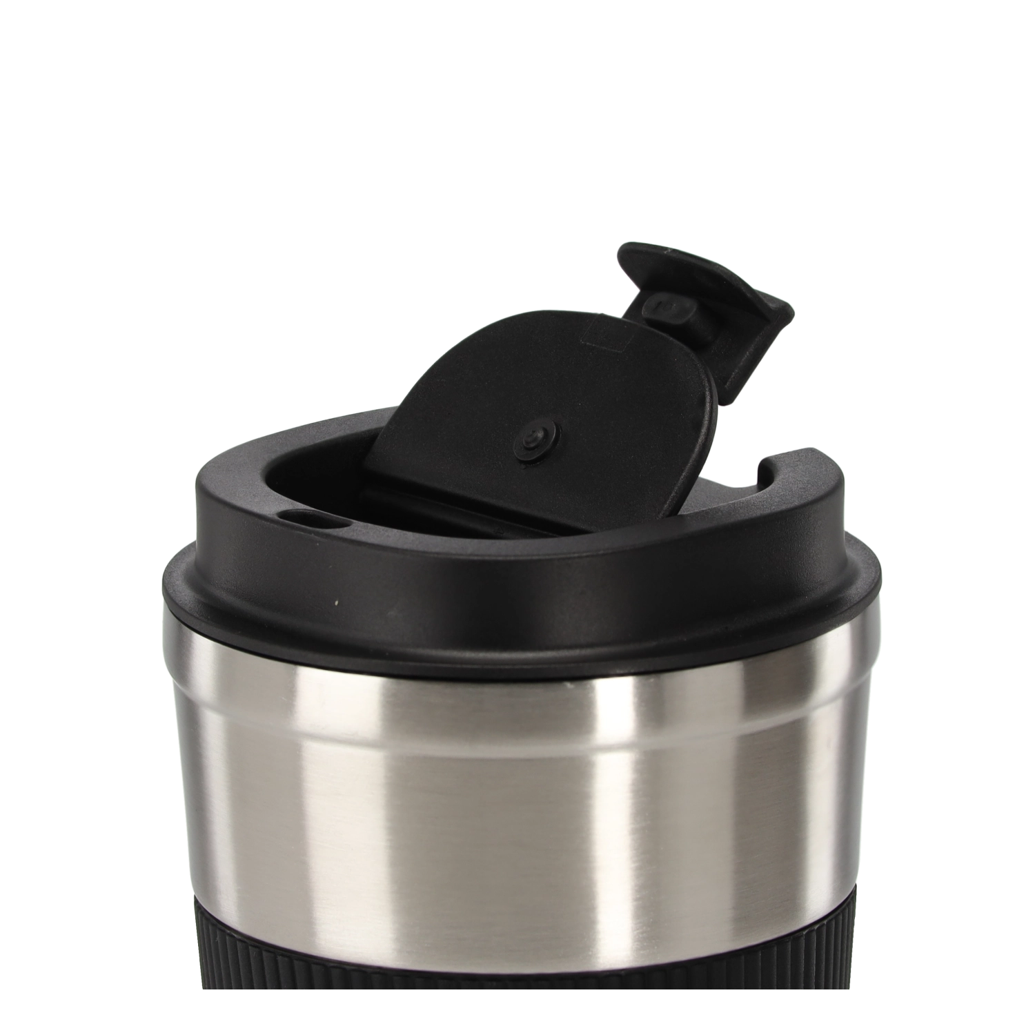 - Corp în culoarea naturală a oțelului inoxidabil, manșon din silicon negru, capac negru