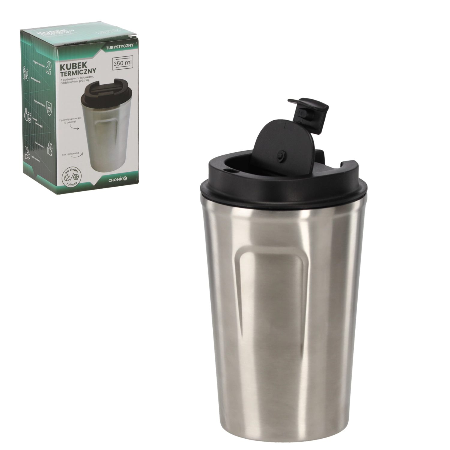 Eleganta cană termo de călătorie, în culoarea naturală a oțelului inoxidabil, combină durabilitatea, designul simplu și izolarea de încredere. Datorită construcției cu vid, cafeaua, ceaiul sau băuturile reci își păstrează temperatura dorită până la 4 ore, fără pierderi inutile de gust.