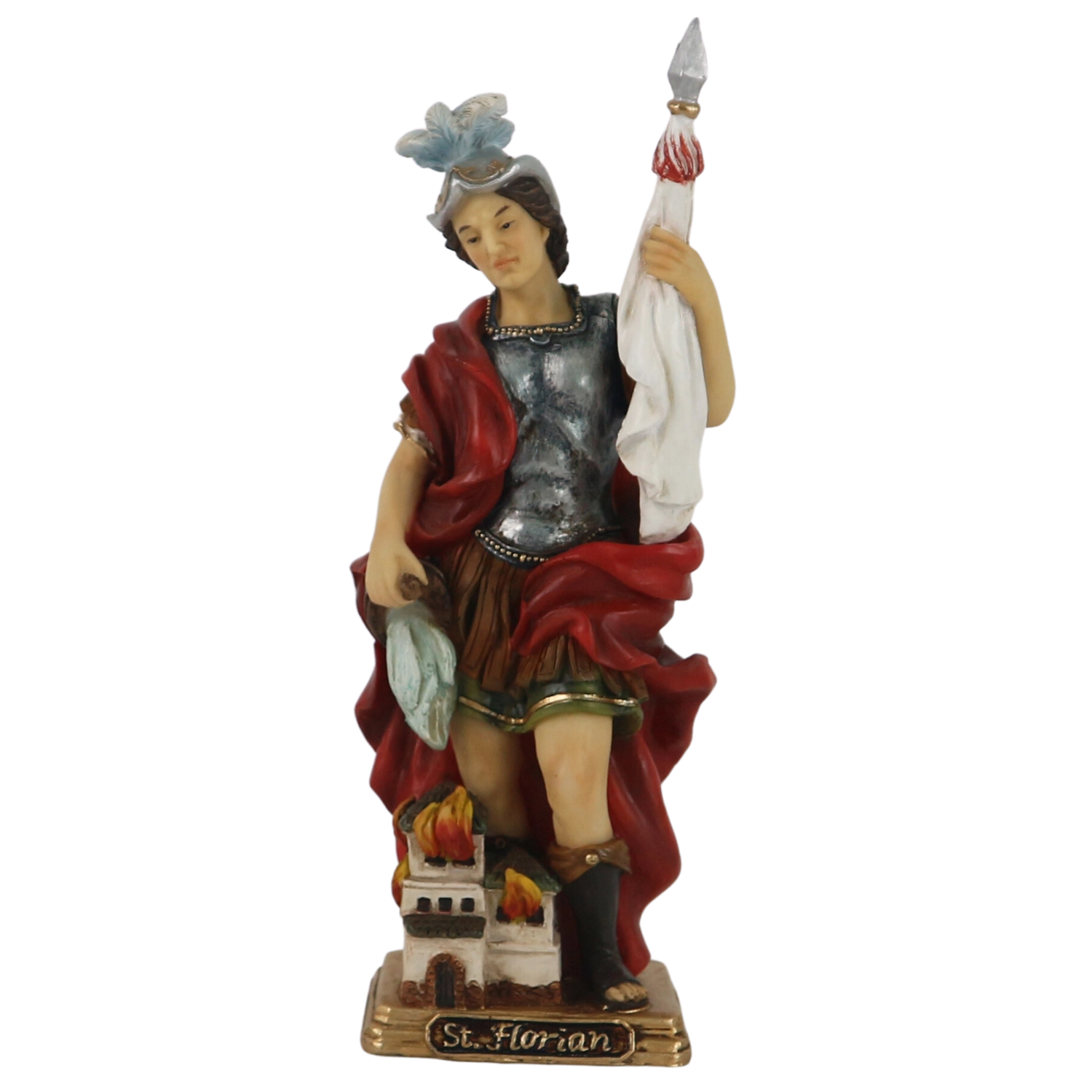 Această statuetă detaliată a Sf. Florian îmbină simbolismul spiritual cu o execuție de calitate. Trăsăturile realiste, mantia expresivă și detaliile pictate îi evidențiază rolul de ocrotitor împotriva focului, fiind potrivită atât pentru interior, cât și pentru exterior.