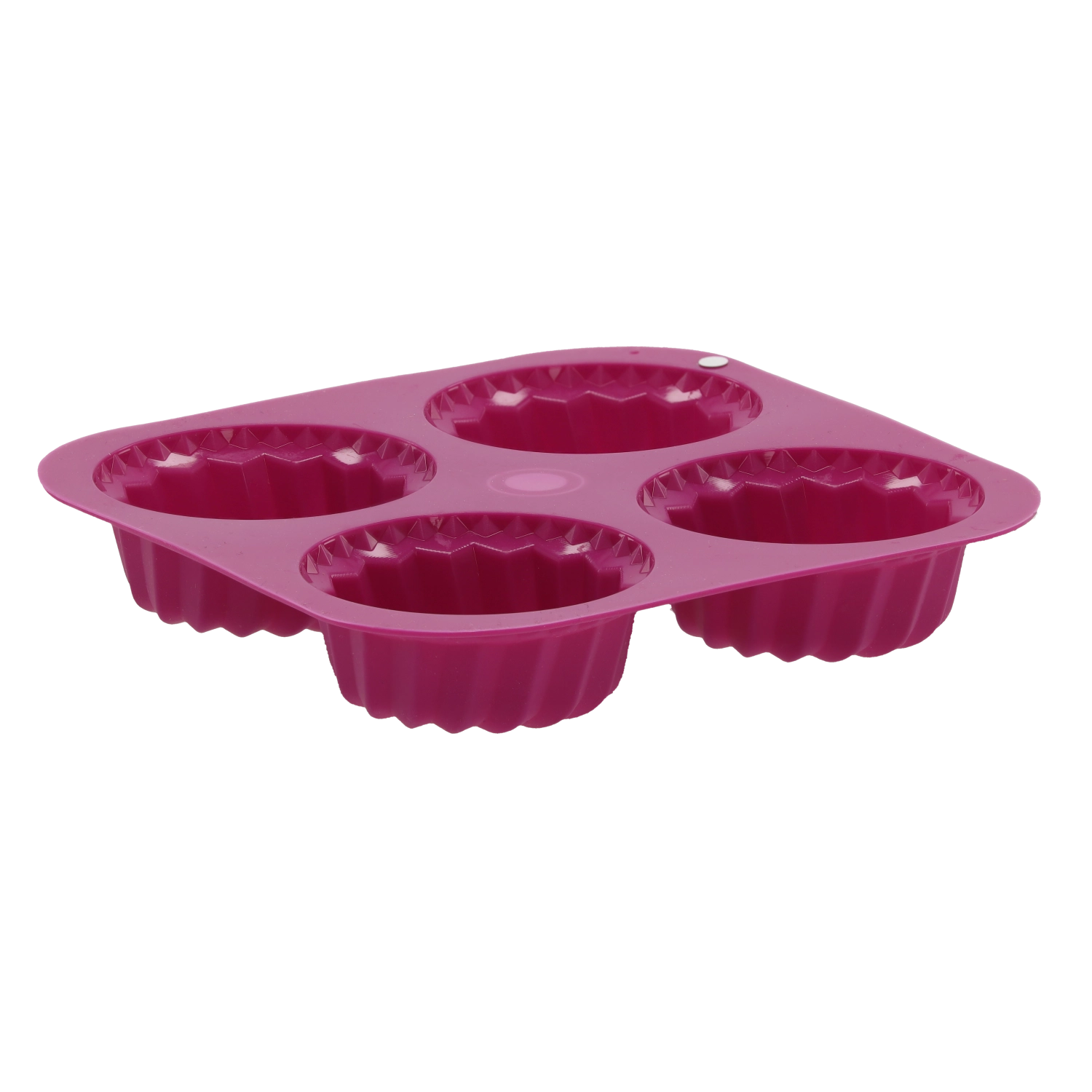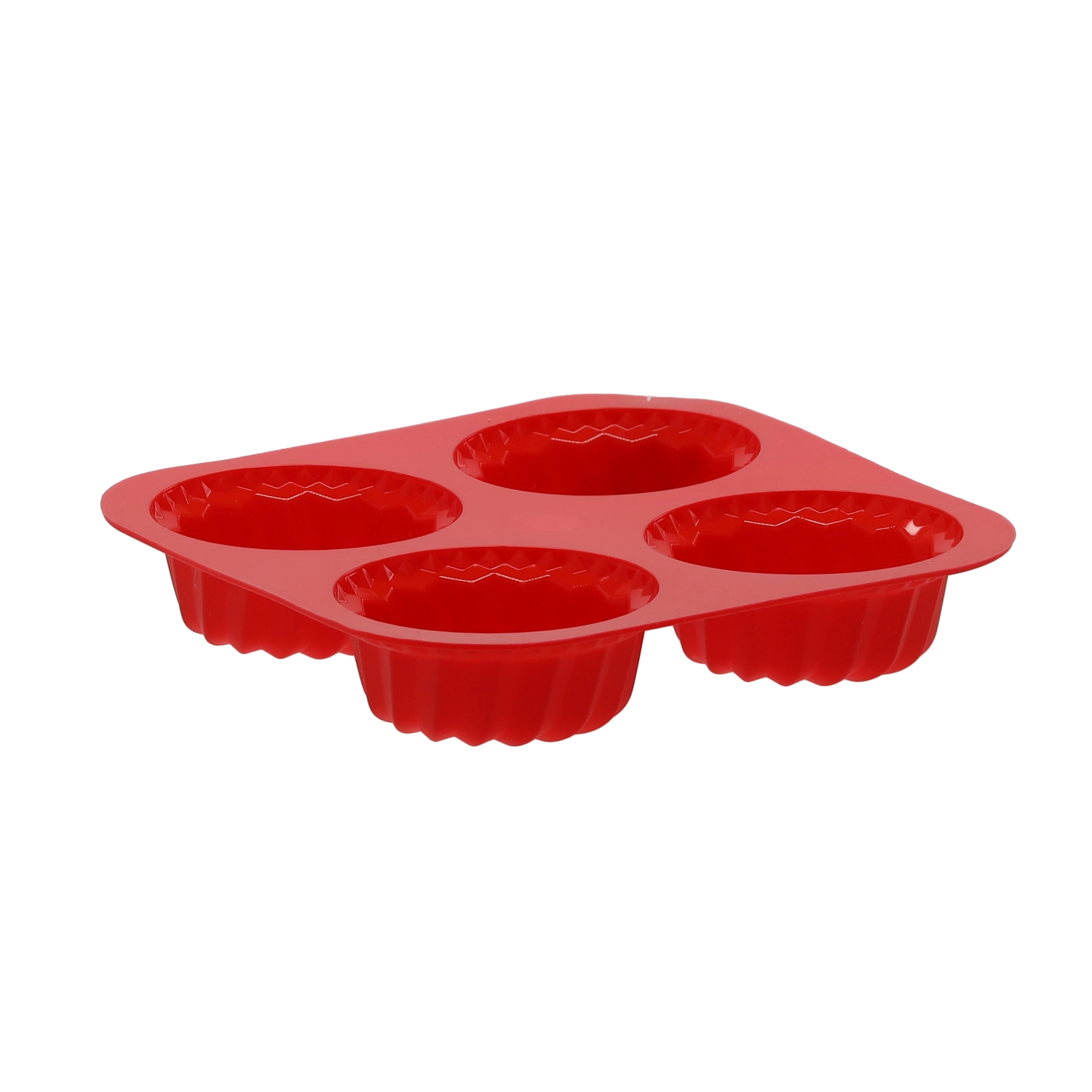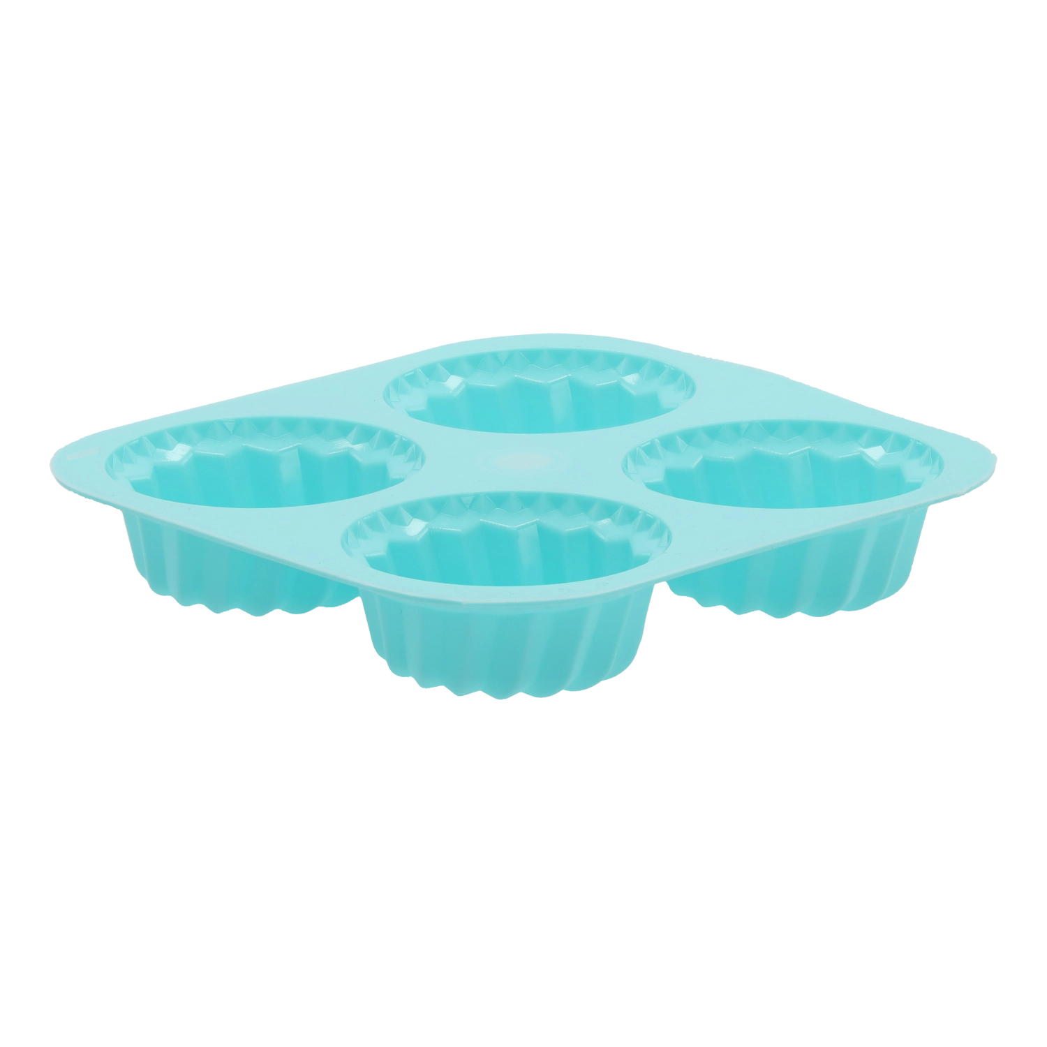 Această formă din silicon pentru brioșe este concepută pentru coacere confortabilă și fiabilă acasă. Siliconul flexibil și antiaderent permite demularea fără probleme și economisește timp la curățenie. Forma compactă, cu o capacitate de 4 porții, este potrivită pentru cuptoare mai mici și pentru coacere rapidă în timpul săptămânii.
