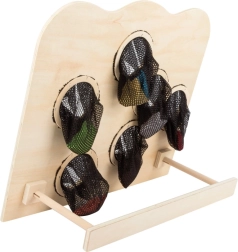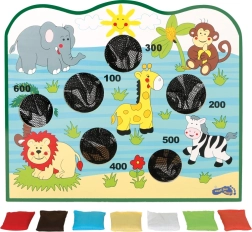 Descoperiți distracția nesfârșită cu jocul de aruncare din lemn Africa, o alegere excelentă pentru copiii de la 3 ani. Jocul nu doar că îmbunătățește coordonarea mână-ochi, dar sprijină și abilitățile motorii, pe măsură ce copiii încearcă să nimerească găurile de diferite dimensiuni cu punguțele colorate.