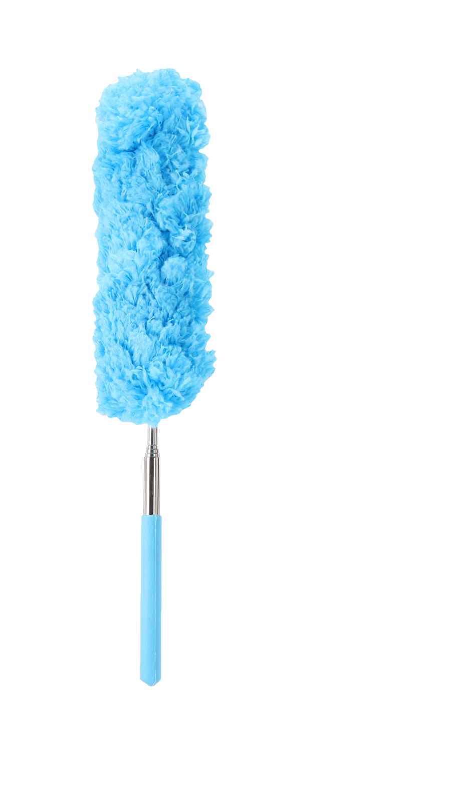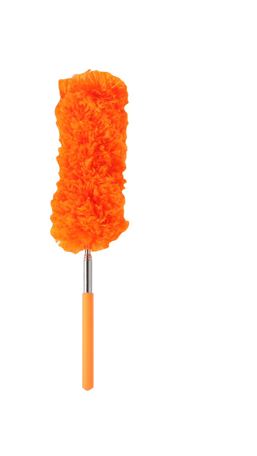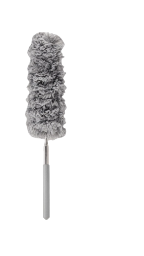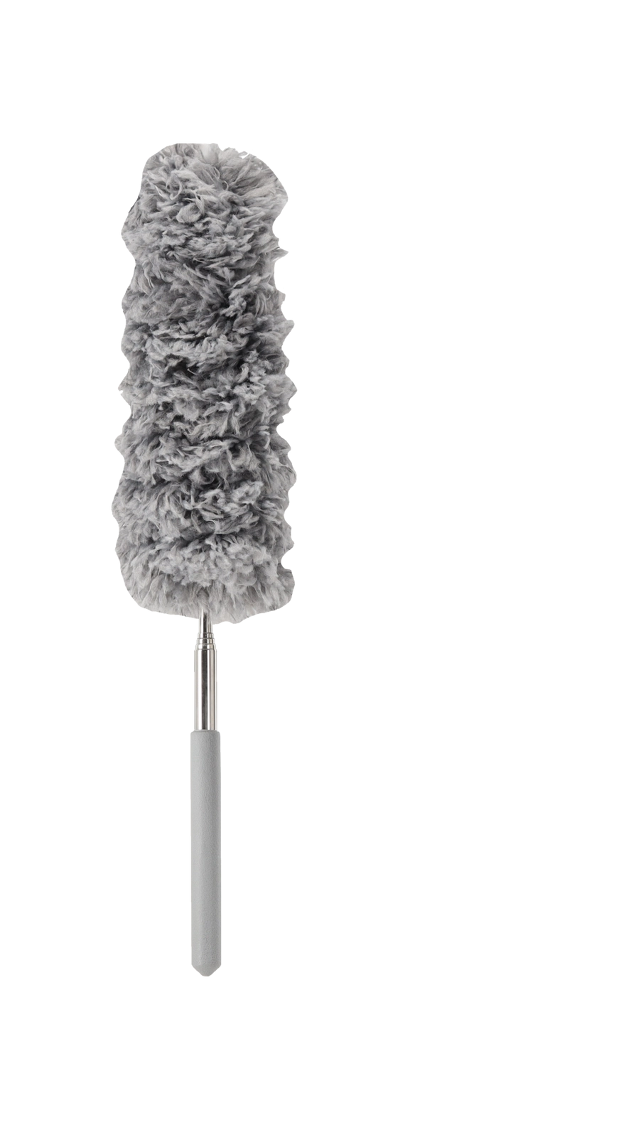 Mânerul telescopic metalic permite reglarea lungimii între 38–85 cm, astfel curățați comod rafturile superioare, ventilatoarele și muchiile de sus ale dulapurilor.