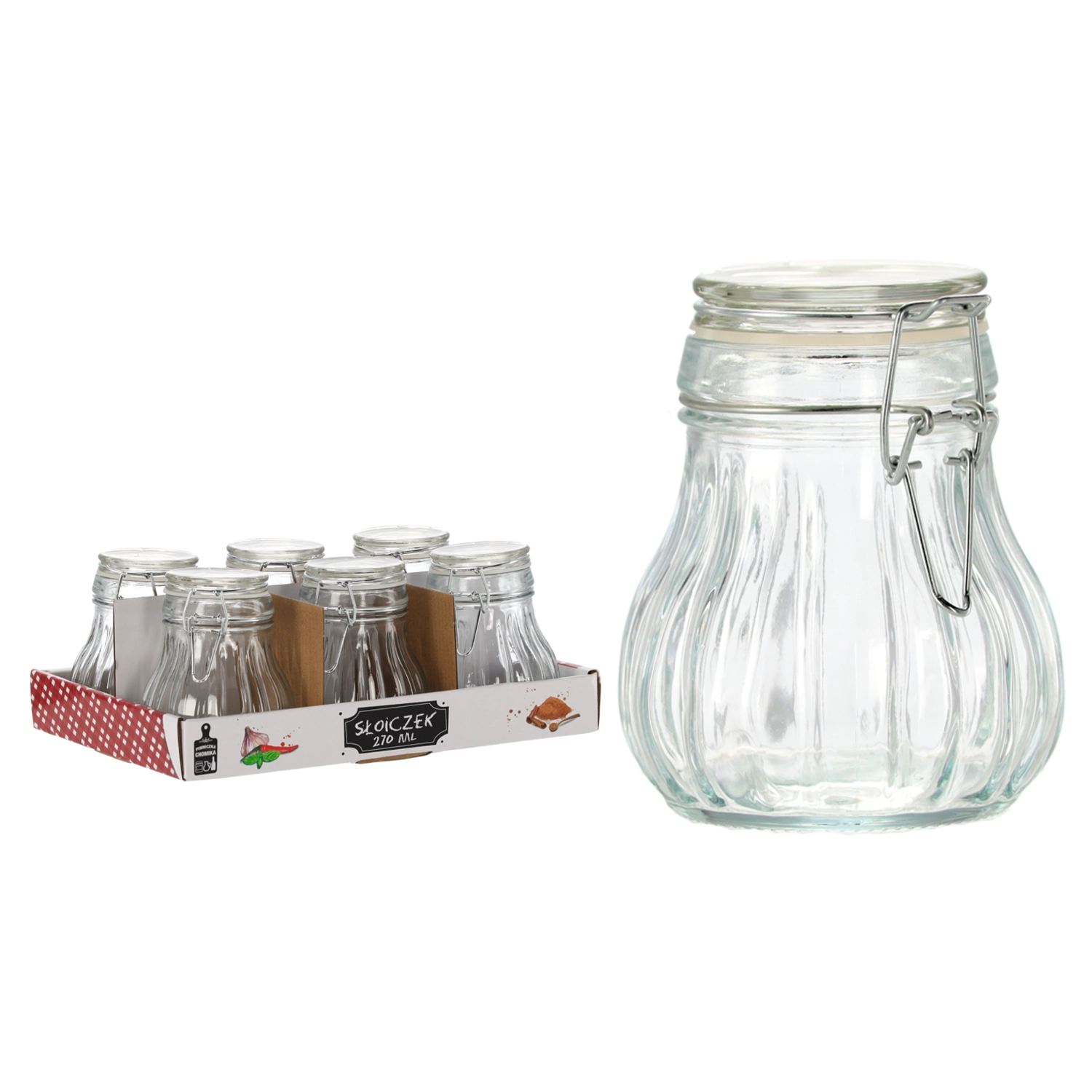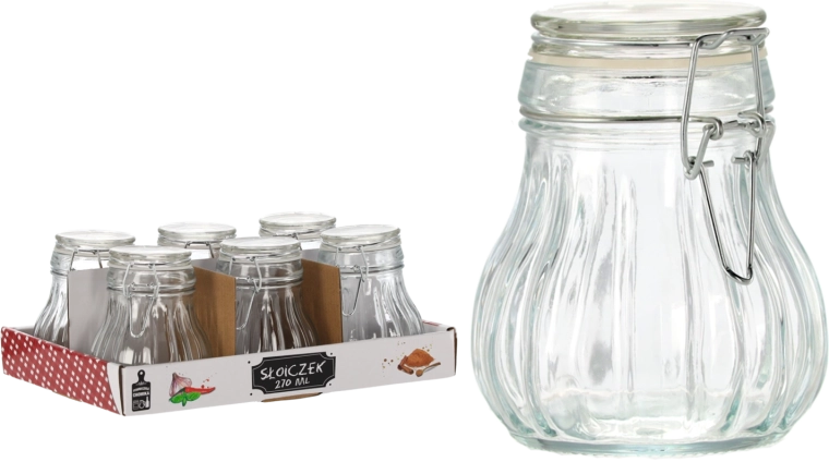 Borcănul practic și elegant din sticlă, cu un volum de 270 ml, este ideal pentru păstrarea condimentelor, conservelor, gemurilor sau mierii. Datorită sticlei transparente vezi ușor conținutul, închiderea mecanică cu clemă metalică asigură etanșare ermetică, iar garnitura din silicon protejează alimentele de umiditate și pierderea aromei.