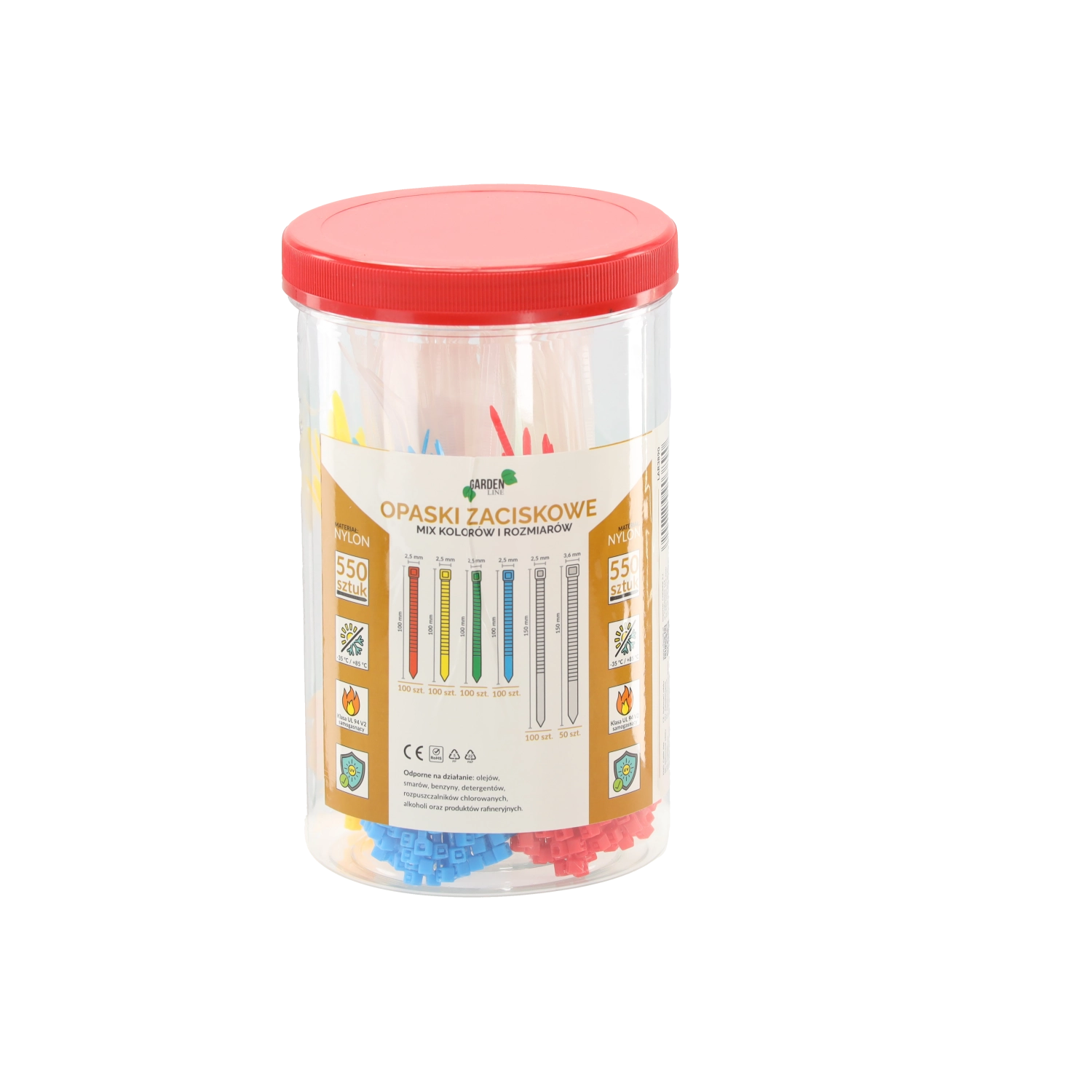 Set universal ce include 550 de coliere de cablu din nailon de înaltă calitate într-un tub practic. Oferă un mix de culori și dimensiuni pentru sortare rapidă și utilizare acasă, în atelier și în industrie. Colierele sunt auto-stingătoare (UL 94 V2), cu rezistență la radiații UV și la substanțe chimice, potrivite pentru un interval larg de temperatură și pentru fixarea fiabilă a cablurilor, furtunurilor și componentelor mici.