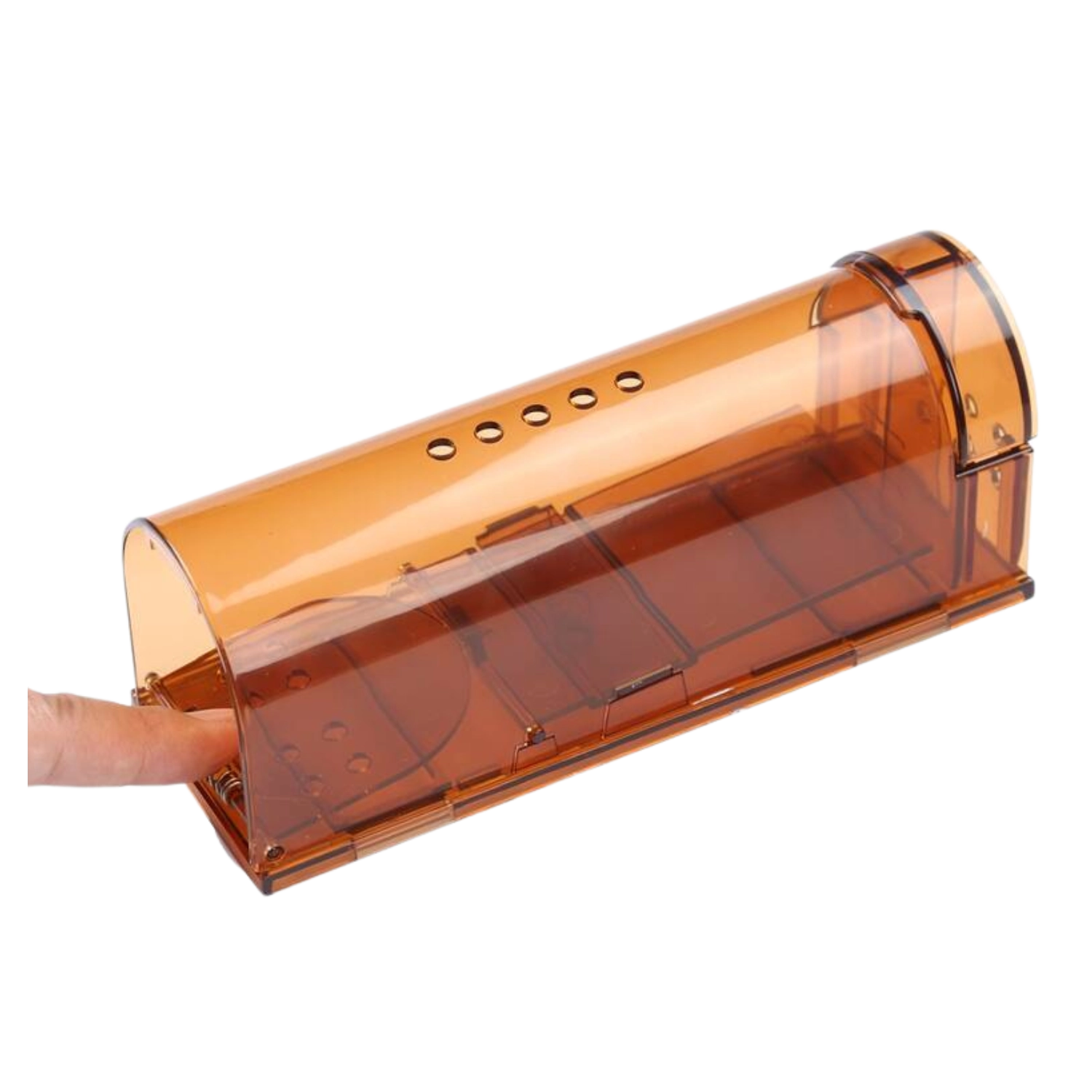 Pereții transparenți ai capcanei permit verificarea imediată dacă rozătoarea a fost prinsă, fără a fi nevoie să deschideți capcana. Economisește timp și crește siguranța manipulării.