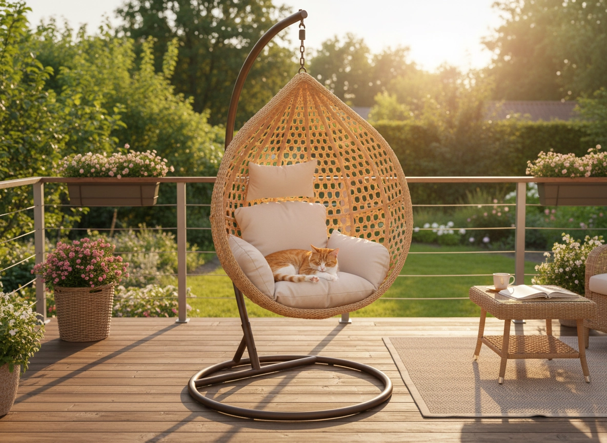 Descoperă confortul și stilul într-un singur produs – scaunul suspendat tip ou, cu coș spațios, oferă un loc primitor pentru relaxarea zilnică. Aspectul natural al împletiturii se potrivește de minune cu exterioarele și interioarele moderne sau clasice, iar capitonajul moale susține spatele și capul.
