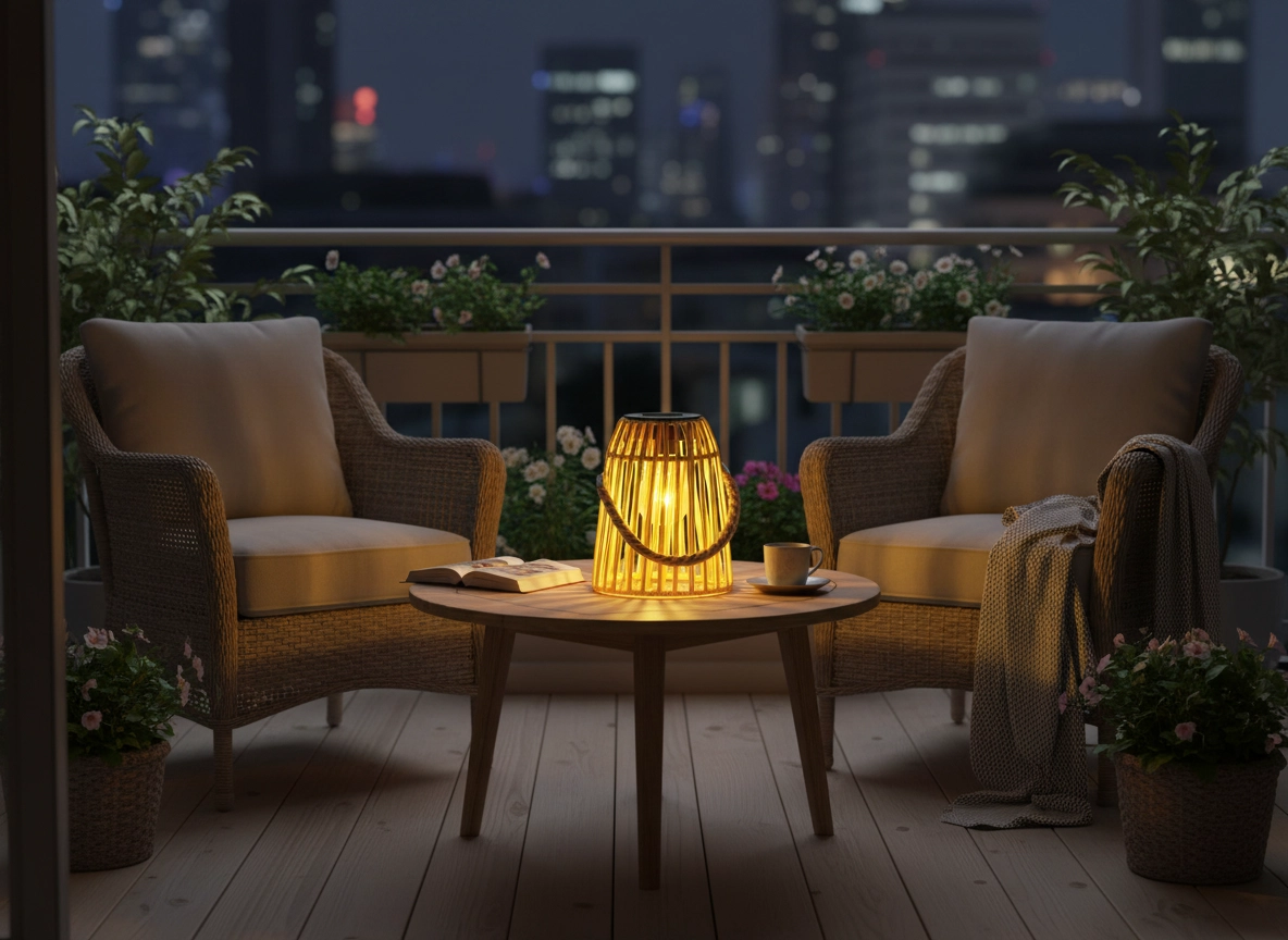 Lumina caldă galbenă creează un ambient primitor pentru serile pe balcon, terasă sau în grădină – ideal pentru relaxare cu o carte sau un pahar.