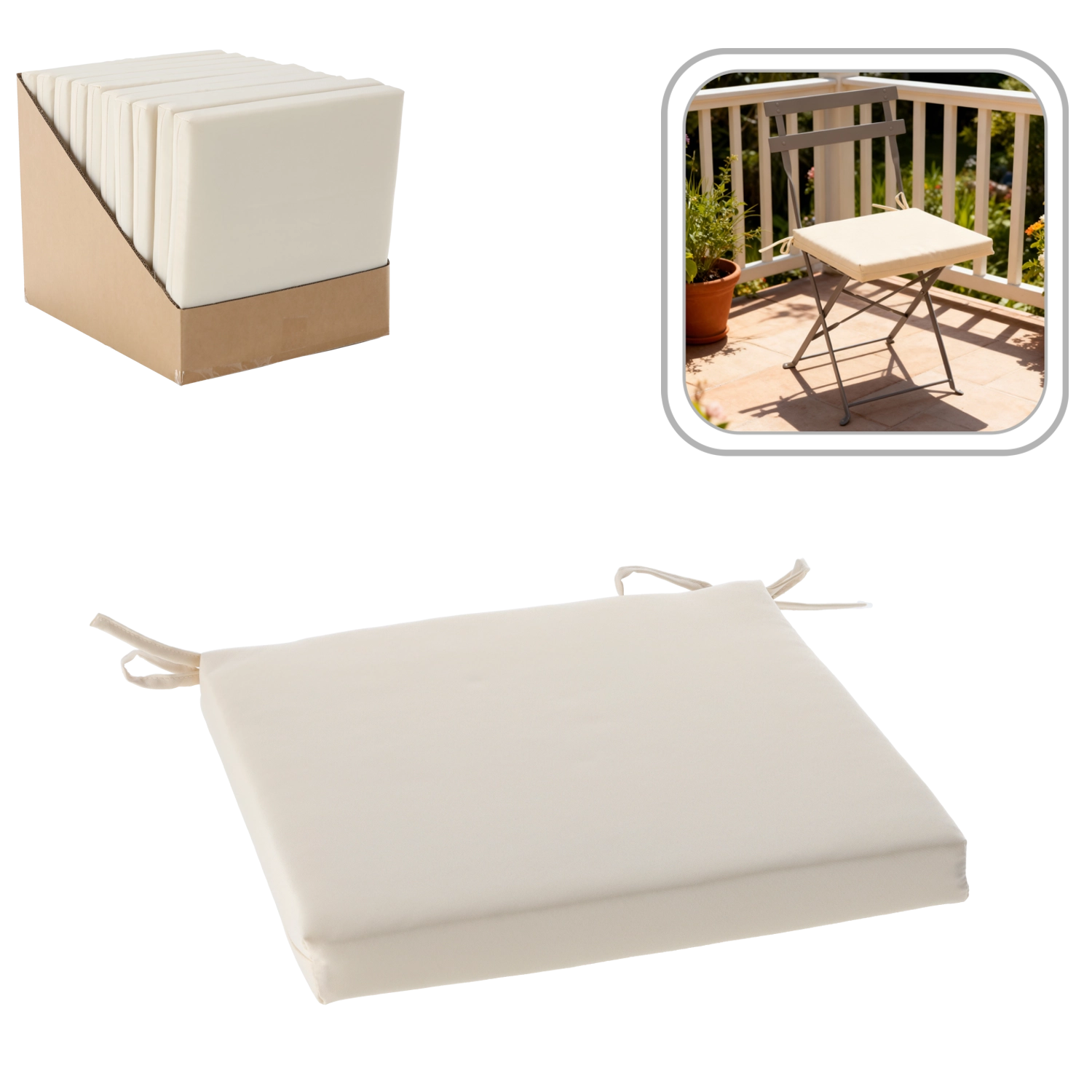 Husa din 100% poliester (160 g/m²) este ușor de întreținut și rezistentă la murdăria obișnuită și la mici stropiri. Șnururile de prindere previn alunecarea pernei de pe scaun, iar fermoarul permite manevrarea comodă a umpluturii.