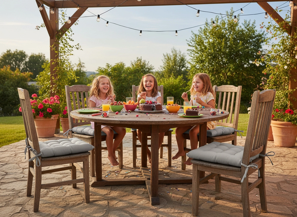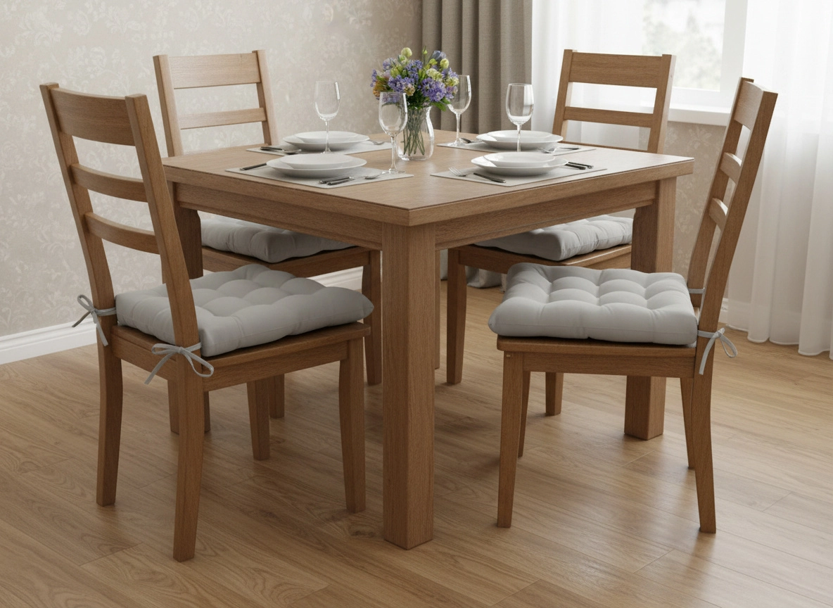 Husa din 100% poliester se curăță ușor și este rezistentă la murdăria obișnuită. Două șnururi de fixare păstrează perna bine prinsă, astfel încât nu alunecă și rămâne exact acolo unde trebuie – ideală pentru sufragerie, bucătărie, birou și pentru spațiile exterioare acoperite.