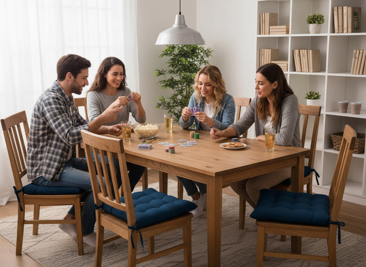 Umplutura moale din fibră de poliester asigură o ședere plăcută și stabilă pe tot parcursul zilei – ideală pentru masa din dining și pentru balcon.