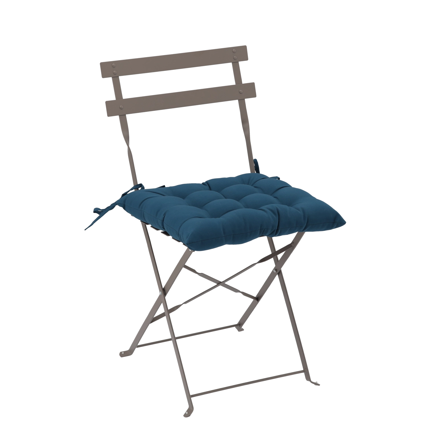 Șnururile integrate fixează ferm perna de cadrul scaunului, astfel încât nu alunecă nici la utilizare frecventă sau când scaunul este pliat.