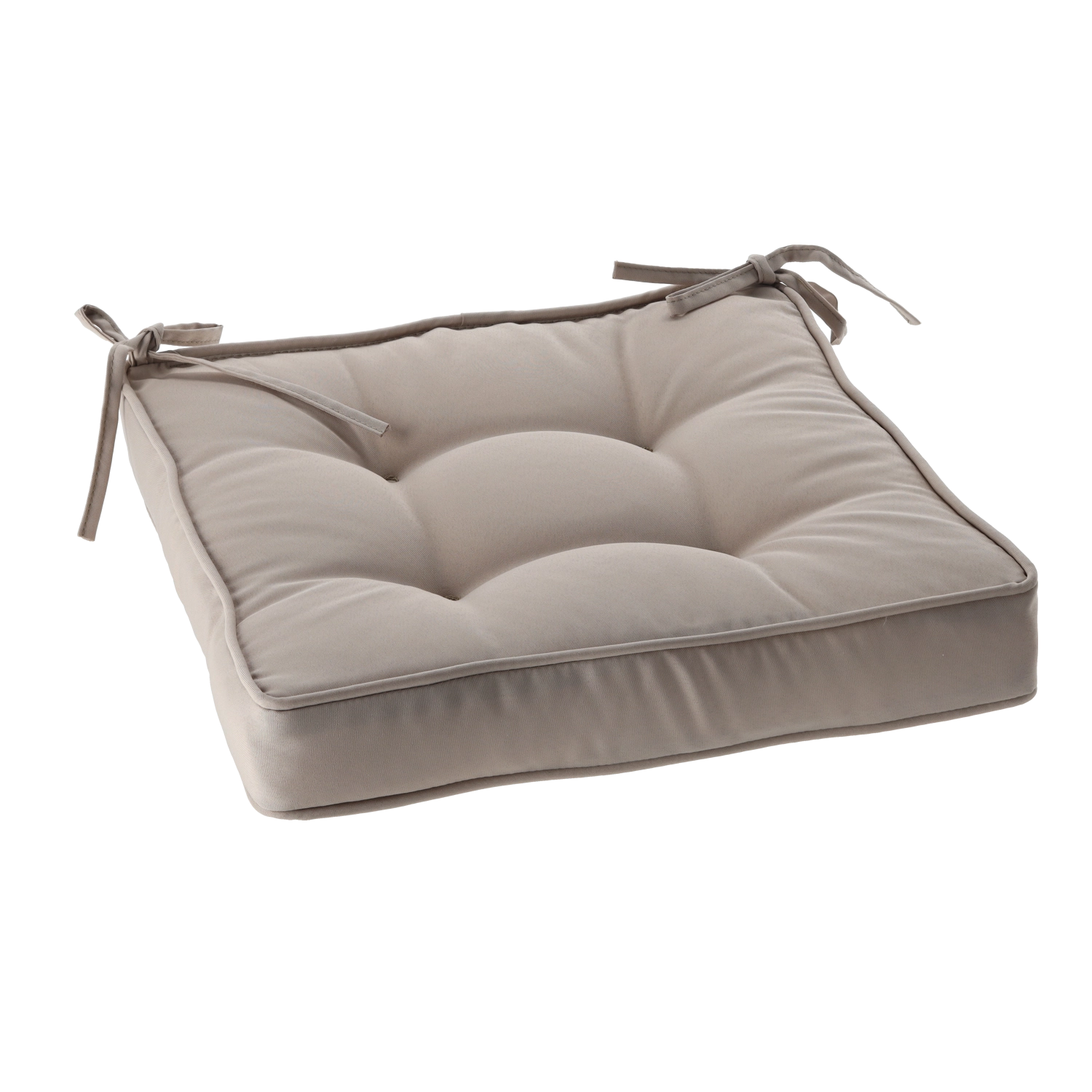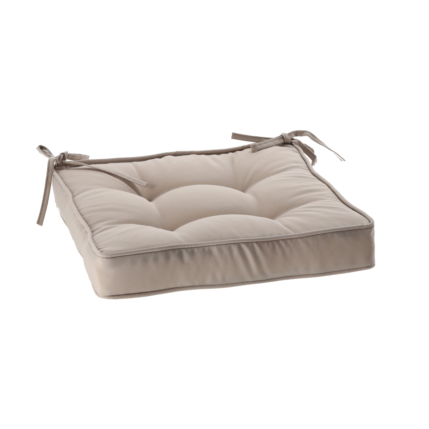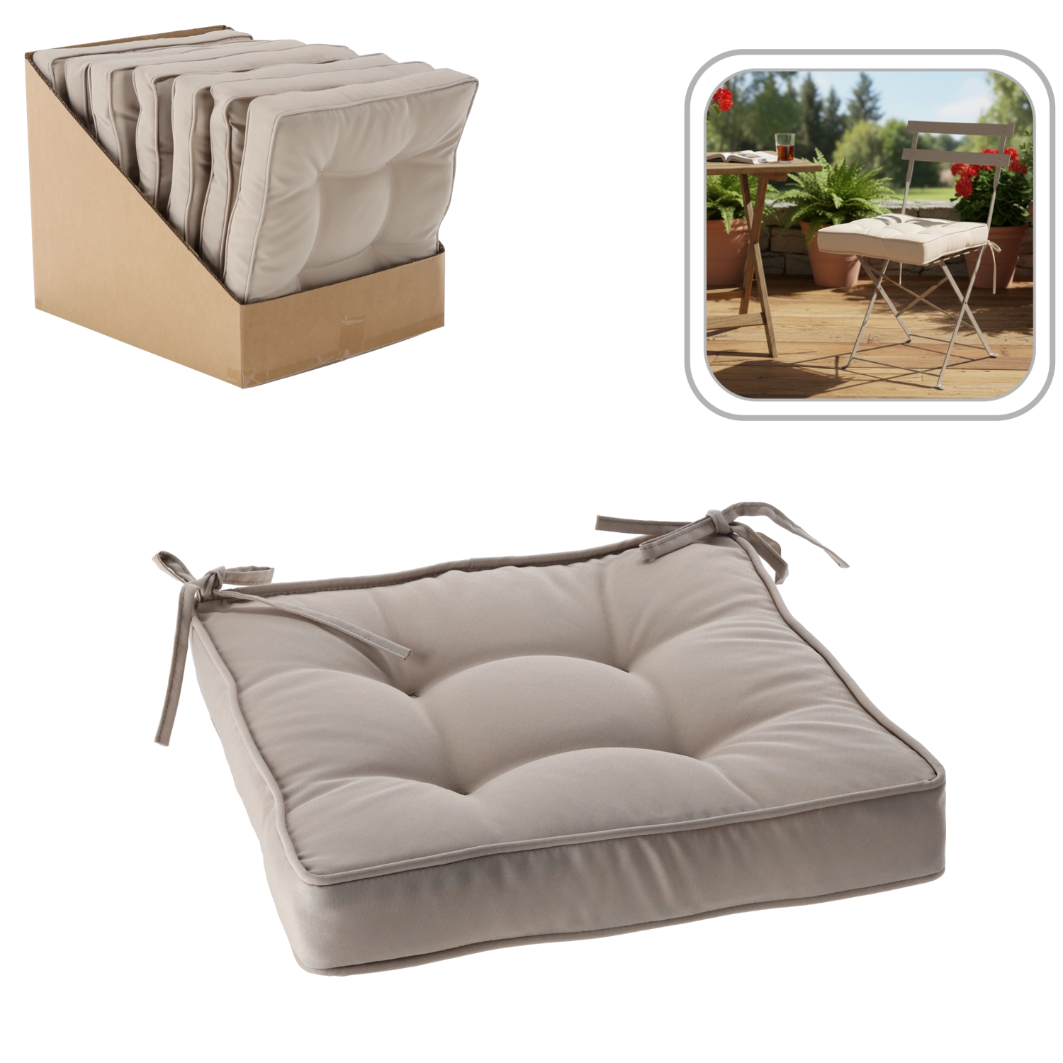 Șnururile practice de fixare previn alunecarea pernei, iar punctele de matlasare ajută la menținerea unei distribuții uniforme a umpluturii. Husa rezistentă din 100% poliester (160 g/m²) este potrivită pentru sufragerie, bucătărie și terasă acoperită.