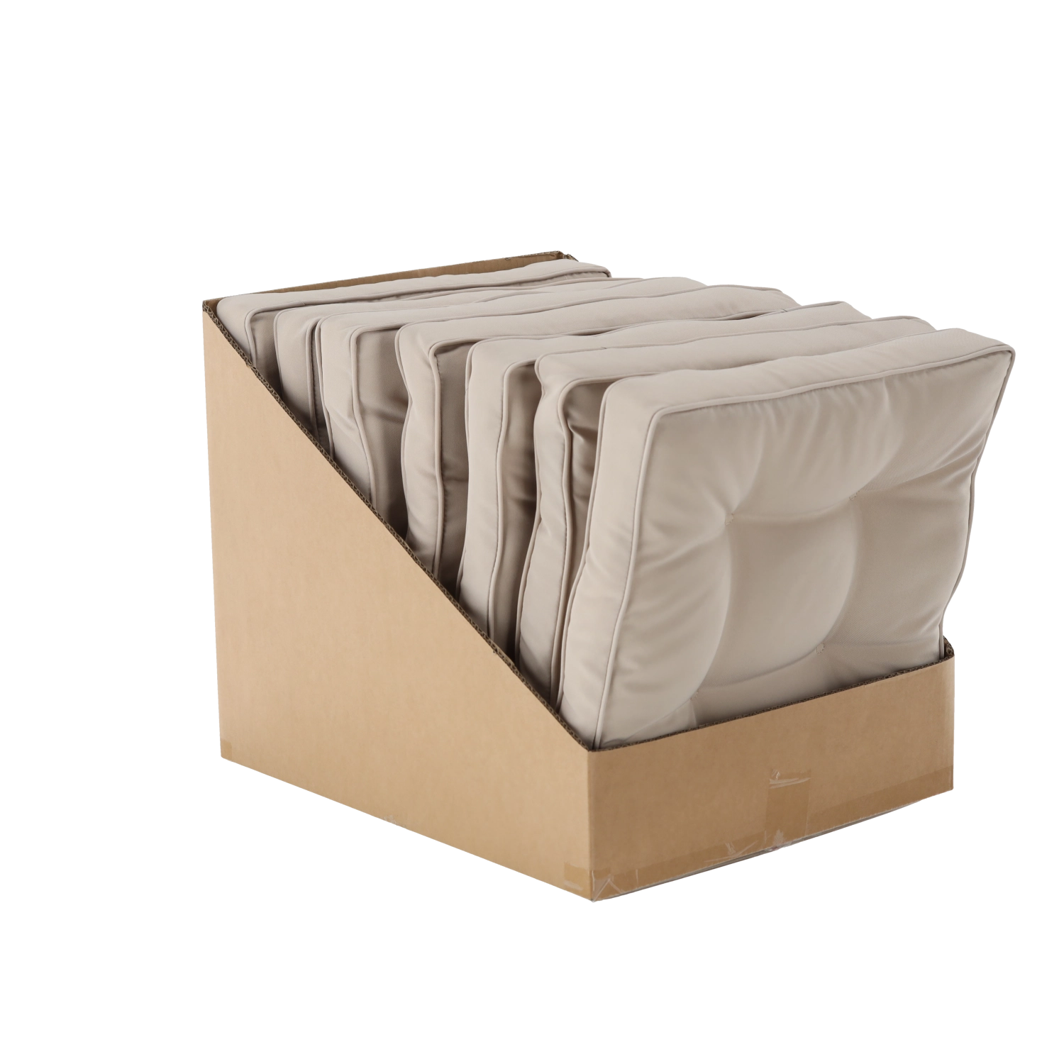 Husa din 100% poliester (160 g/m²) este rezistentă la utilizarea zilnică. Cele patru puncte de matlasare păstrează forma și adaugă un detaliu estetic.