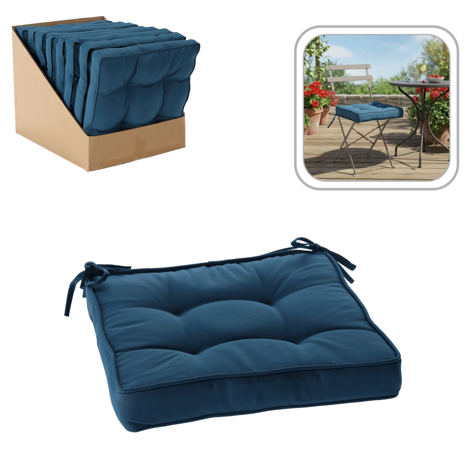 Practicele șnururi pentru legare de scaun împiedică alunecarea, astfel încât perna rămâne exact acolo unde ai nevoie. Nuanța de albastru se potrivește ușor cu mobilierul din lemn și cu interioarele moderne, iar în zona de grădină creează o atmosferă plăcută și confortabilă.