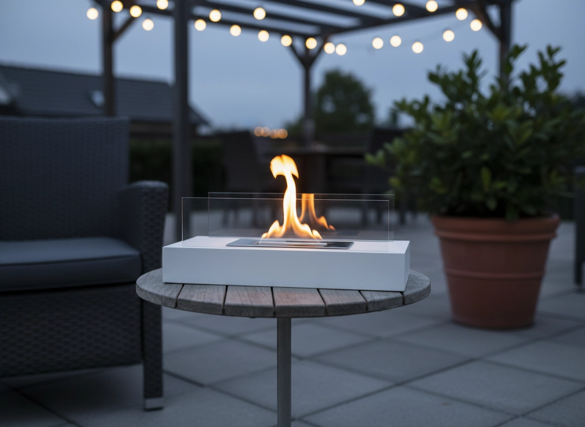 Aduceți în spațiul dvs. farmecul autentic al focului – fără instalare și fără miros. Șemineul de masă cu bază albă și laterale din sticlă transparentă oferă ardere curată a bioetanolului și o flacără liniștitoare pentru relaxare, seri romantice și întâlniri stilate cu prietenii.