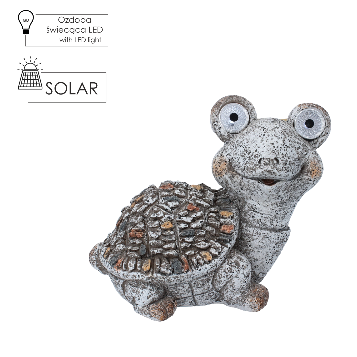 Această figurină jucăușă în formă de țestoasă adaugă instantaneu o atmosferă primitoare spațiului exterior. Panoul solar integrat încarcă bateria pe timpul zilei, iar LED-urile din ochi se aprind automat după lăsarea serii, astfel că nu aveți nevoie de cabluri sau prize. Datorită dimensiunilor compacte, se potrivește ușor pe scări, pervaz, bordură, jardiniere sau în stratul de flori.