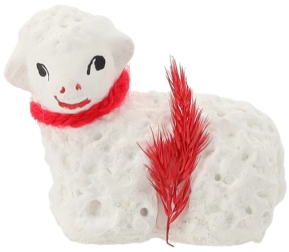 Creează acasă adevărata atmosferă de primăvară cu mielușelul de Paște așezat. Datorită dimensiunilor compacte 4,5 × 2,5 × 4 cm este potrivit pentru coșul pascal, masa de sărbătoare și pentru decorațiuni moderne. Accentele de culoare oferă figurinei jovialitate și eleganță, integrându-se excelent în stiluri diferite de aranjament.