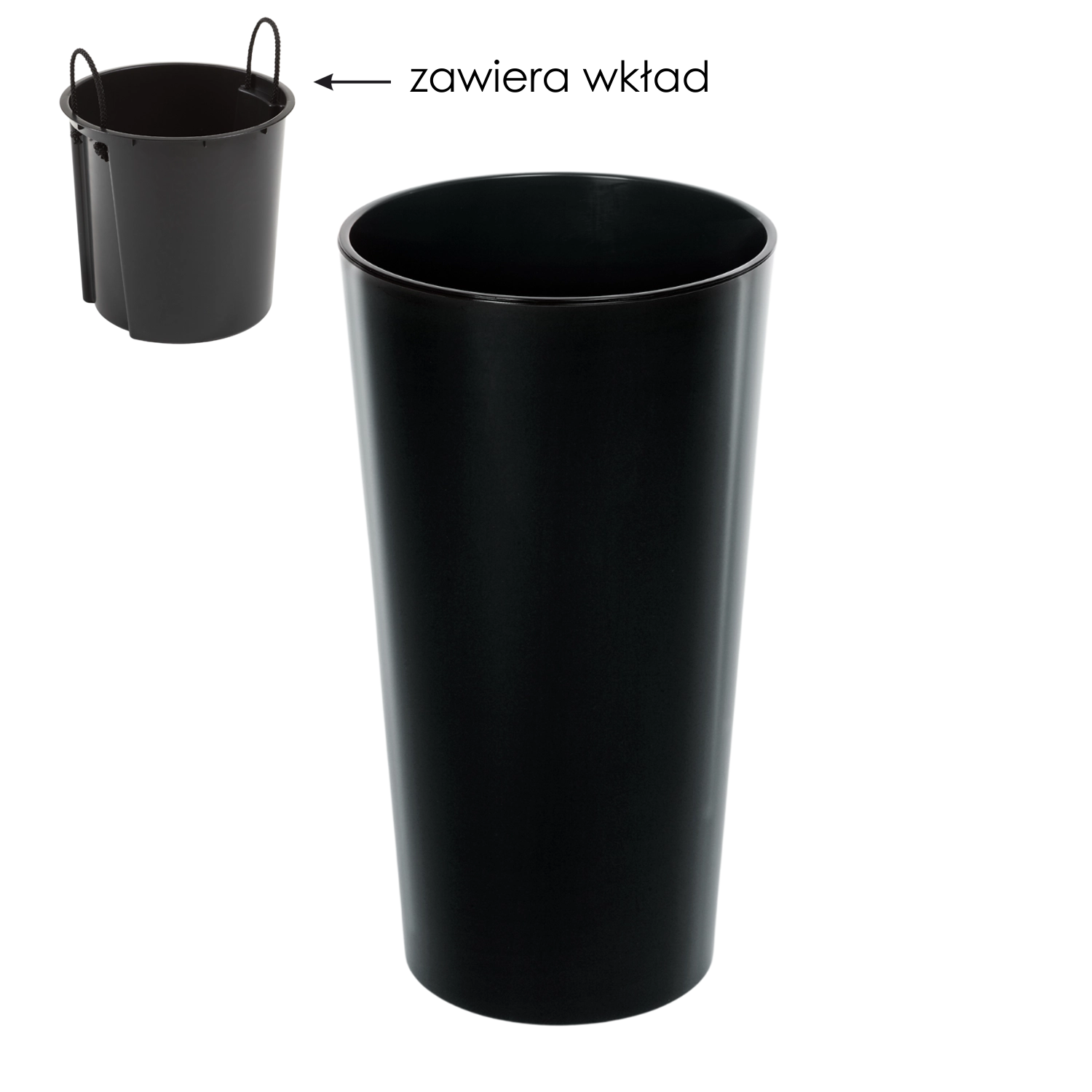 Ghiveciul Lilia, în finisaj negru lucios, este un accesoriu stilat pentru orice casă și grădină. Datorită insertului detașabil, spațiul pentru rădăcini este folosit eficient și se economisește substratul, în timp ce suprafața elegantă se potrivește cu amenajări moderne sau clasice.