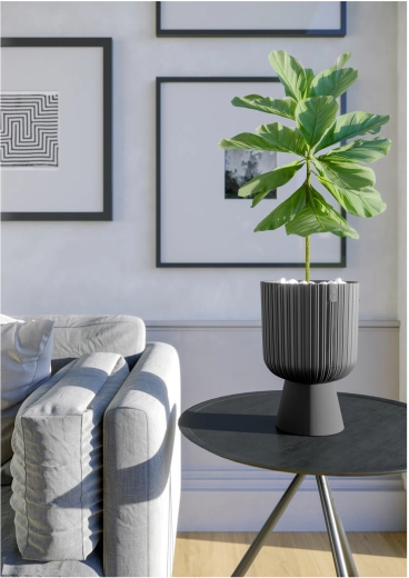 Elegantul ghiveci Keli Mika cu diametrul de 38,5 cm, în culoare antracit, este ideal pentru interior și exterior. Este realizat din plastic de calitate, cu rezistență la îngheț și la radiații UV, astfel încât își păstrează culoarea și forma pe termen lung. Datorită designului modern cu caneluri verticale și bază netedă, oferă spațiului tău un aspect sofisticat. Volumul generos de 42,1 l susține creșterea sănătoasă a plantelor, iar greutatea redusă asigură o manipulare ușoară.
