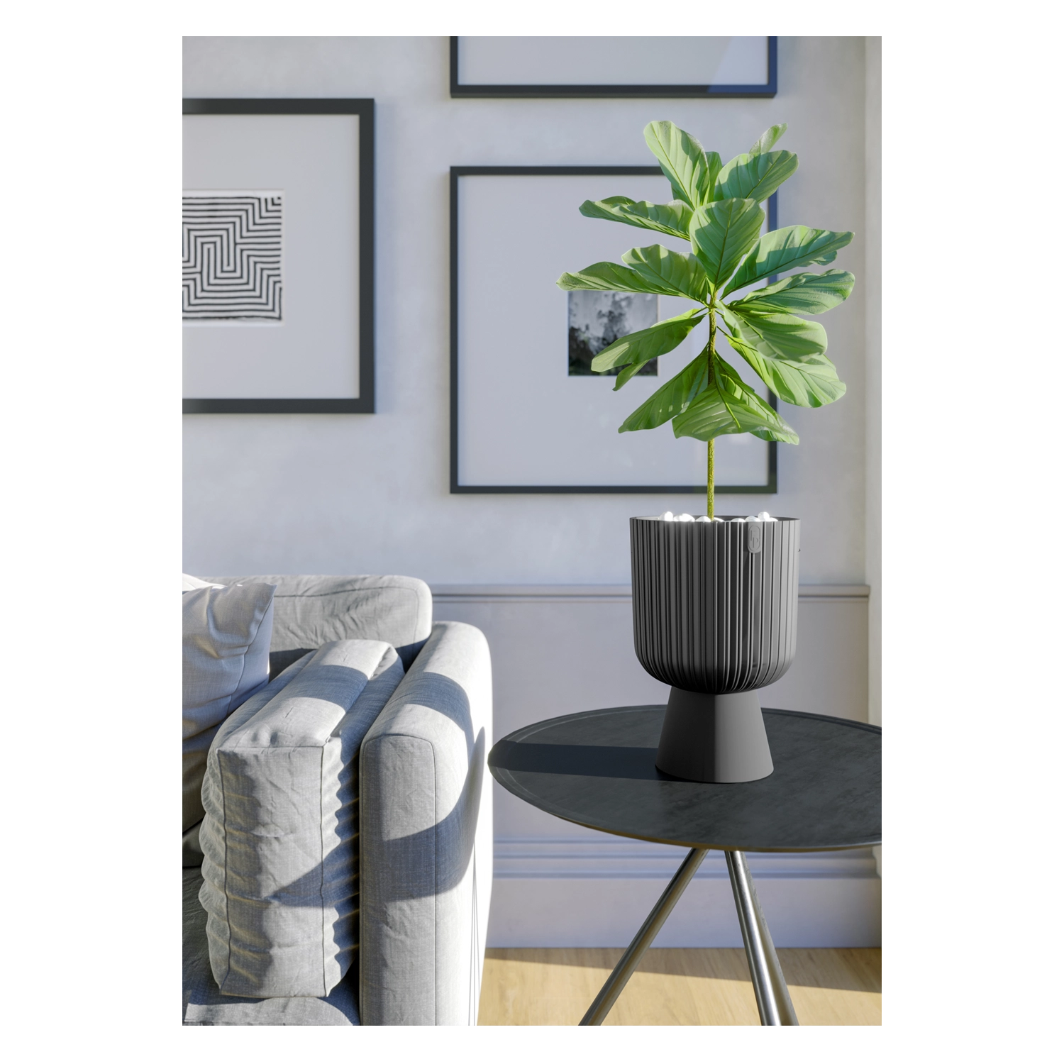 Cauți un ghiveci stilat și practic pentru plante mai mari? Keli Mika, în nuanță antracit, combină un design atemporal cu rezistență ridicată. Datorită plasticului rezistent la îngheț și stabil la UV, este potrivit pentru terase, balcoane și living, păstrându-și aspectul pentru multe sezoane.