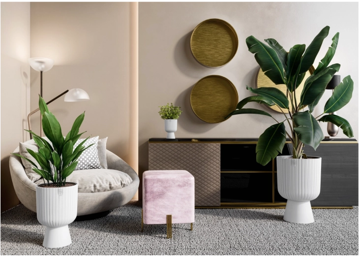 Ghiveciul KELI Mika îmbină un aspect atemporal cu funcționalitate practică. Datorită plasticului ușor și rezistent, se manevrează facil; culoarea alb mat și canelurile verticale fine oferă oricărui spațiu un aspect curat și sofisticat. Baza lărgită asigură stabilitate chiar și pentru plante mai înalte.