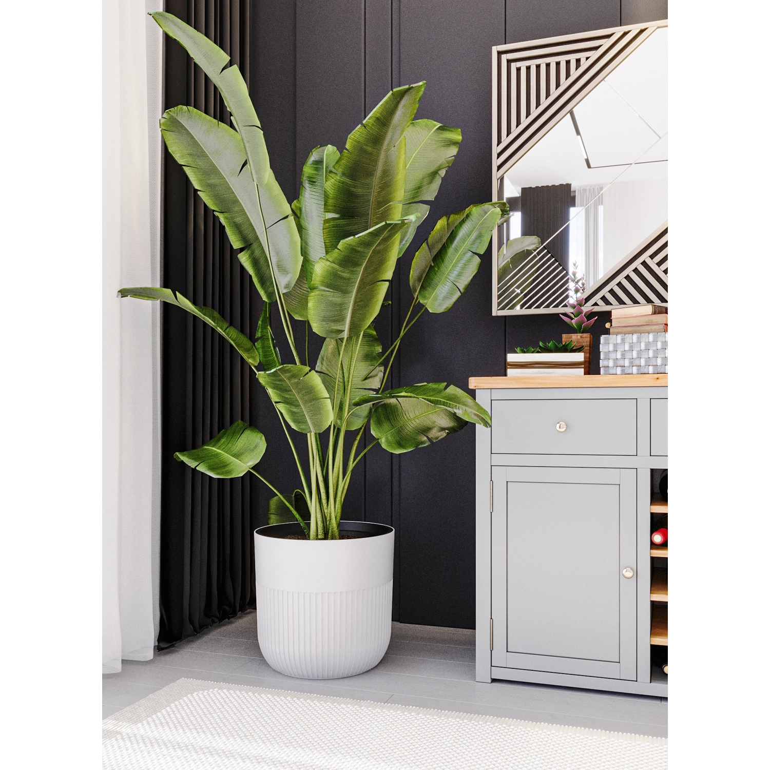 Datorită suprafeței netede, se curăță și se întreține foarte ușor. Este ideal pentru living, bucătărie, balcon, terasă și grădină. Culoarea albă, universală, evidențiază frumusețea naturală a plantelor și se combină ușor cu alte accesorii.
