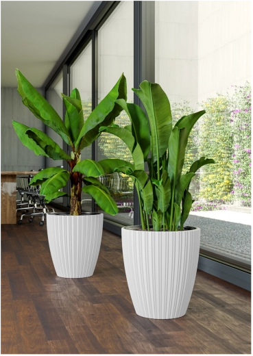 Ghiveciul MIKA combină aspectul modern cu practicitatea. Suprafața mată are un aer elegant și este ușor de întreținut, iar canelurile verticale revitalizează vizual orice spațiu – de la camera de zi până la terasă sau balcon. Datorită rezistenței la îngheț și la factorii atmosferici, este ideal pentru utilizare în aer liber pe tot parcursul anului.