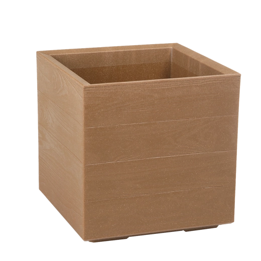 Ghiveciul elegant Lamela Karo Eco Wood îmbină aspectul natural cu practicitatea. Este realizat din plastic cu până la 40% fibre de lemn și oferă rezistență la intemperii, imitație fidelă a lemnului și manevrare ușoară datorită rotițelor. Inserția integrată cu orificii și dop pentru reglarea scurgerii apei protejează plantele de excesul de apă și le prelungește durata de viață.