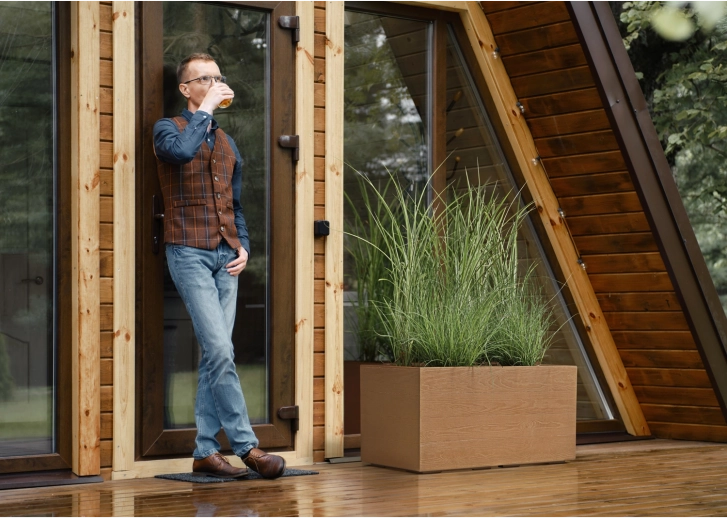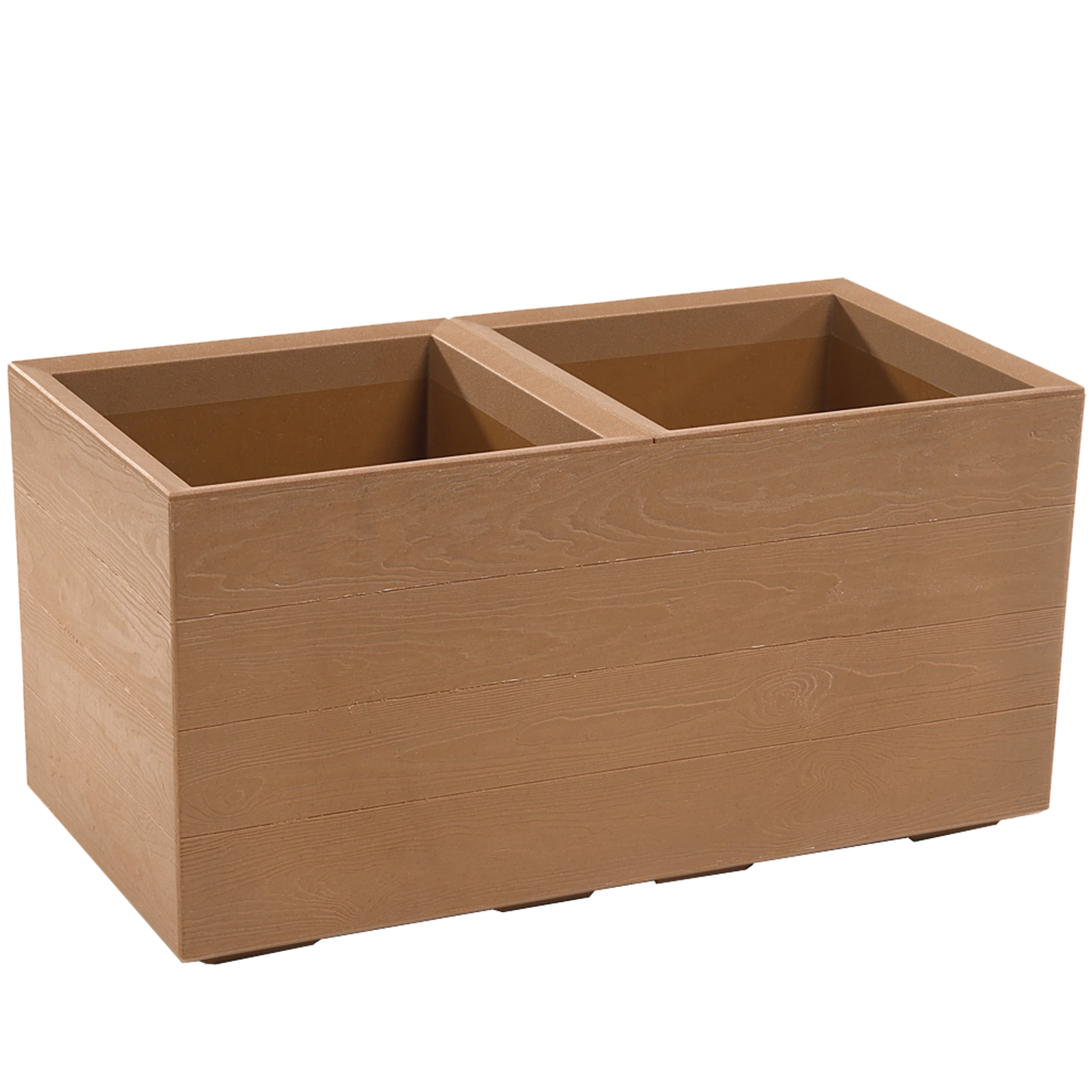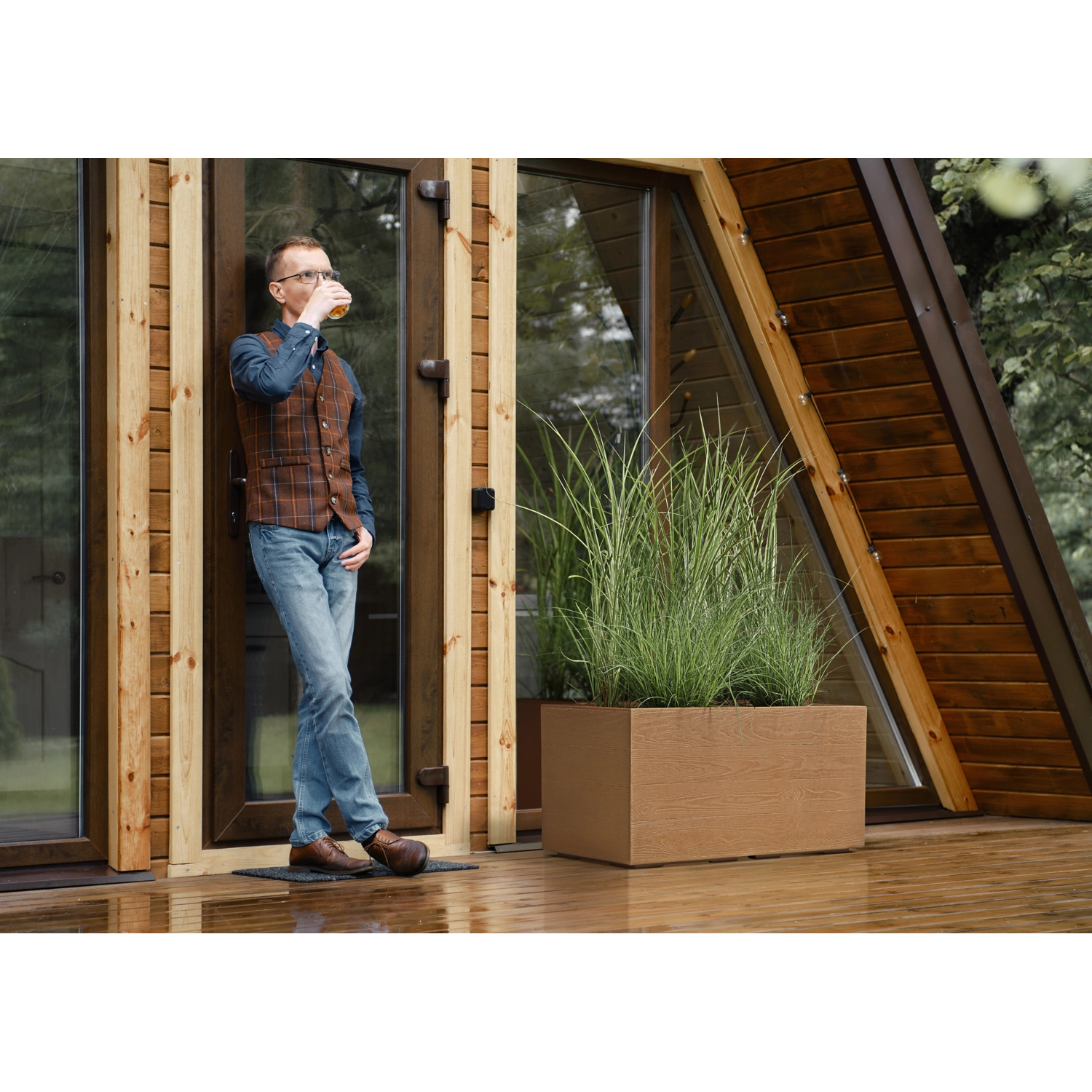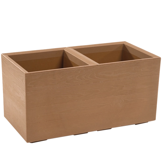 Ghiveciul Karo Eco Wood îmbină tehnologia modernă cu un aspect natural. Plasticul cu adaos de lemn imită fidel textura lemnului, păstrând în același timp greutatea redusă, întreținerea facilă și durabilitatea ridicată. Datorită volumului de 72 l, oferă plantelor suficient spațiu pentru o creștere sănătoasă.