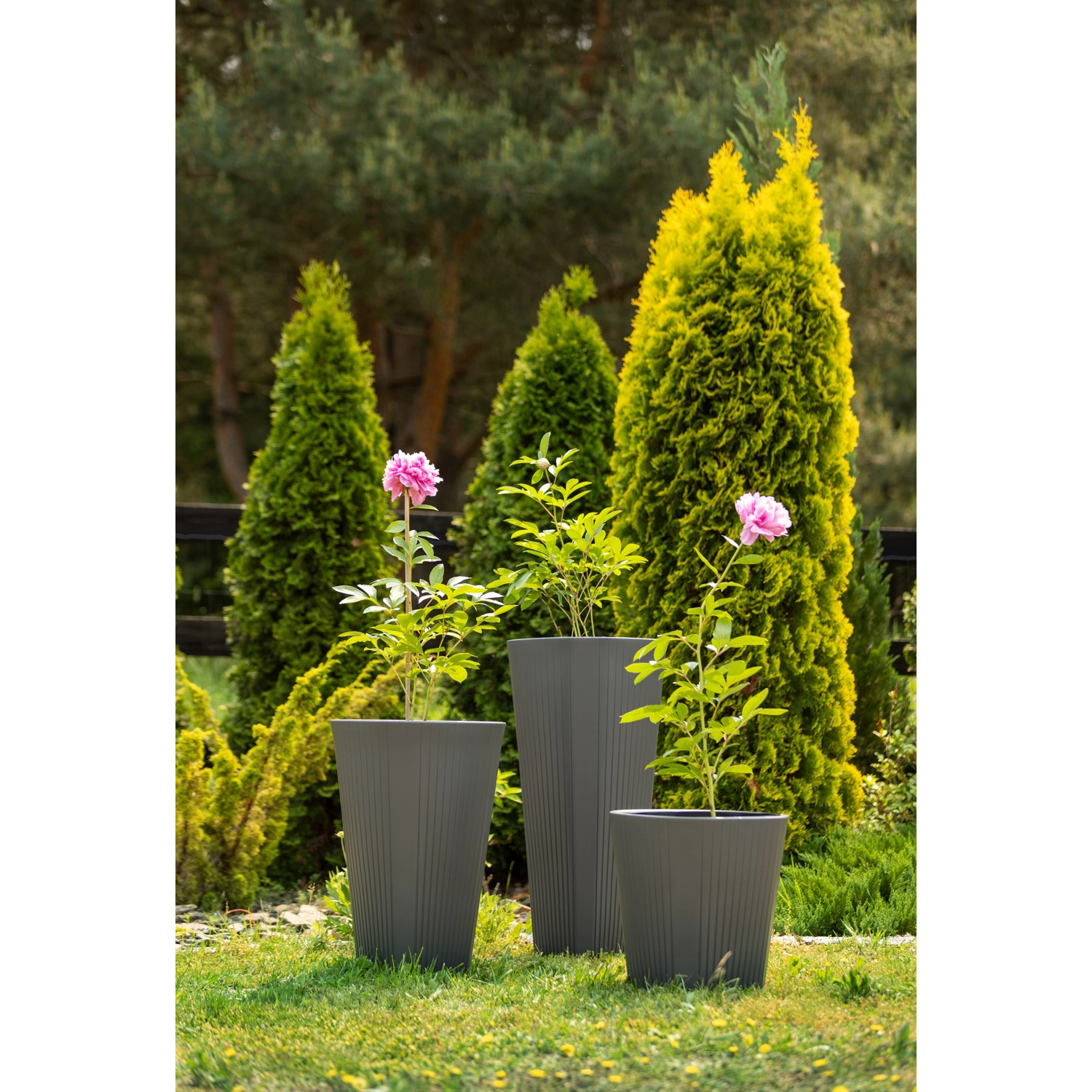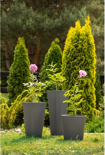 Ghiveciul stilat MUZA în culoare antracit impresionează prin relieful care pornește fluid de la bază și se estompează treptat spre partea superioară. Datorită aspectului atemporal, completează perfect spațiile moderne și clasice, acasă sau pe terasă.