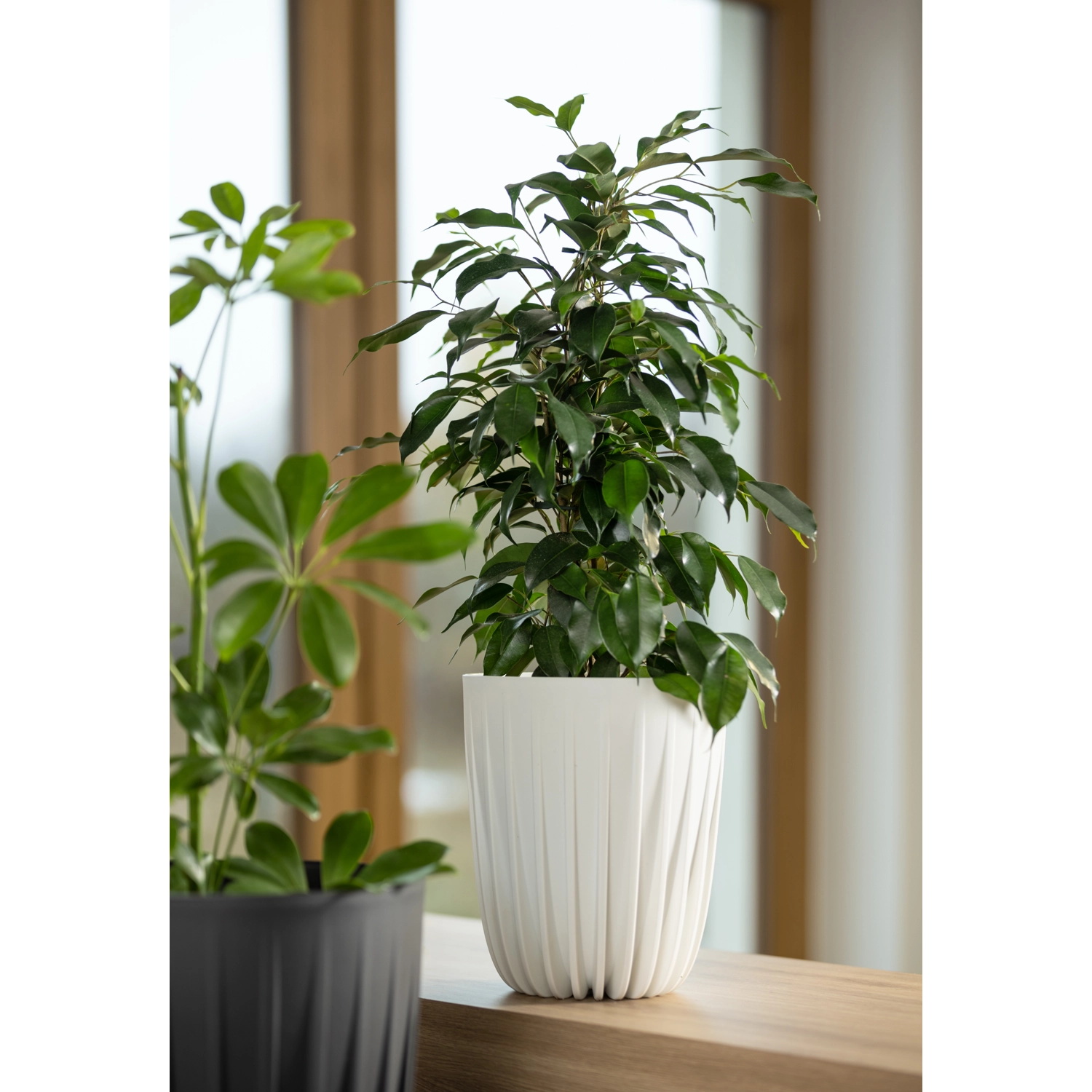 Ghiveciul Mira 30 cm alb îmbină estetica modernă cu proprietăți practice. Datorită plasticului reciclat de calitate, este extrem de durabil și totodată ușor, astfel încât se transportă și se întreține cu ușurință. Suprafața mată oferă un aspect atemporal și se potrivește perfect în living, pe balcon, terasă sau în grădină.