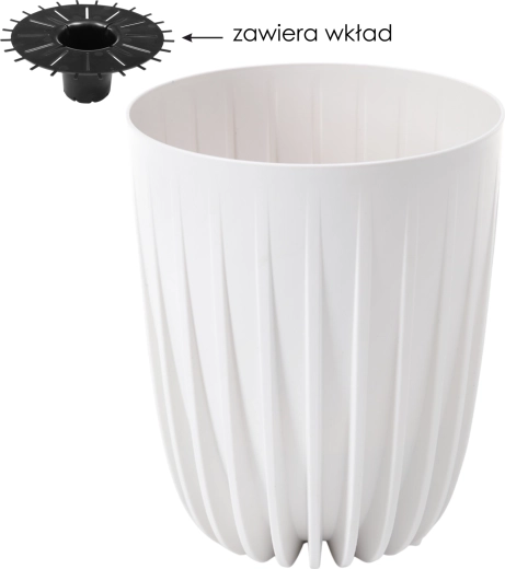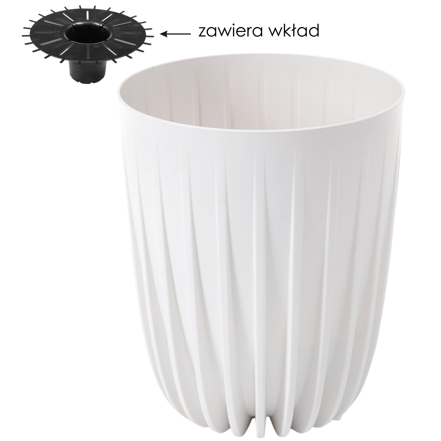 Elegantul ghiveci Mira, cu diametrul de 39 cm, în culoare albă, impresionează prin designul modern minimalist și suprafața mată. Este fabricat din plastic reciclat rezistent, ceea ce îi permite să facă față înghețului și intemperiilor. Include o inserție detașabilă pentru udare mai ușoară și economie de substrat. Ideal pentru interior și exterior – pe balcoane, terase și în grădini.